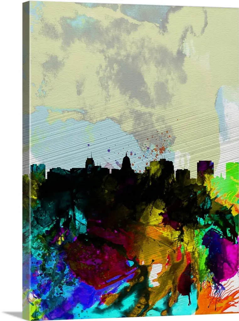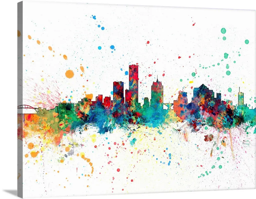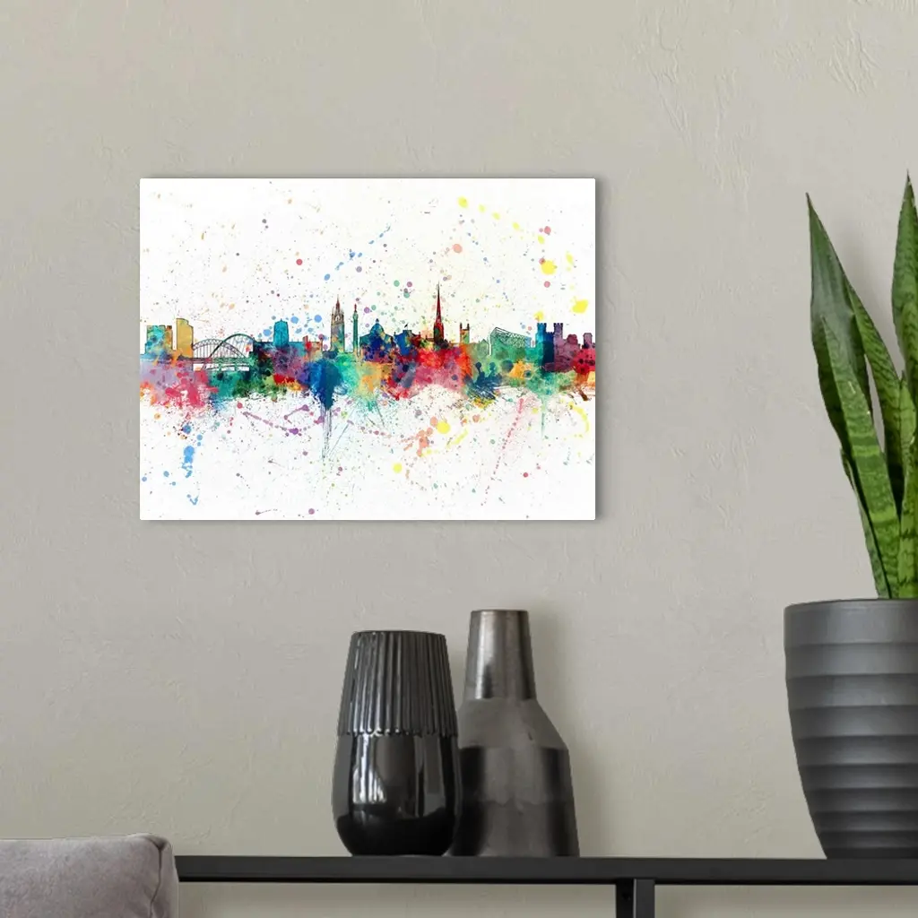 Watercolor art print of the skyline of Newcastle, England, United Kingdom.