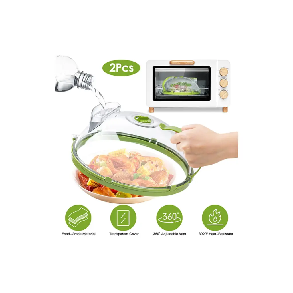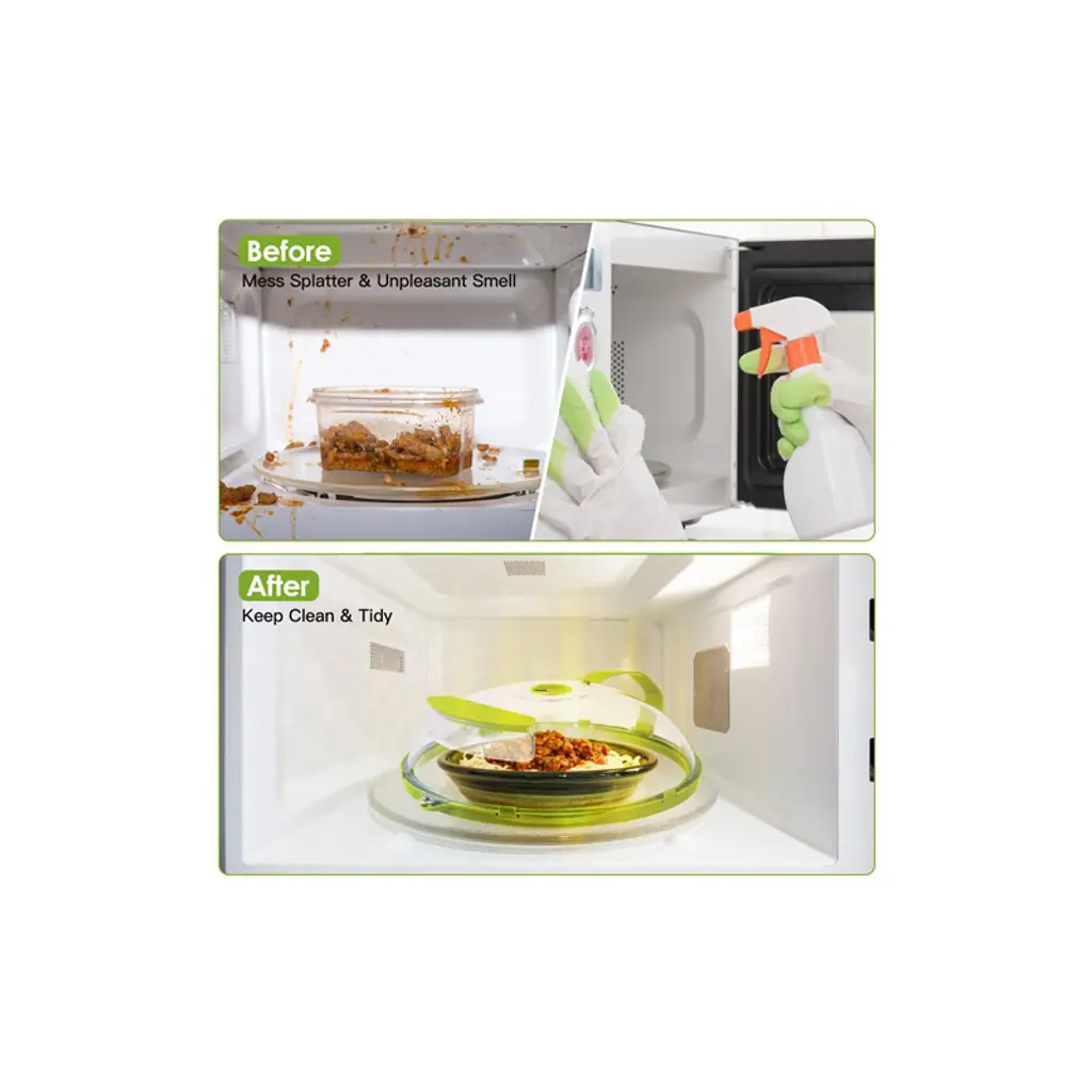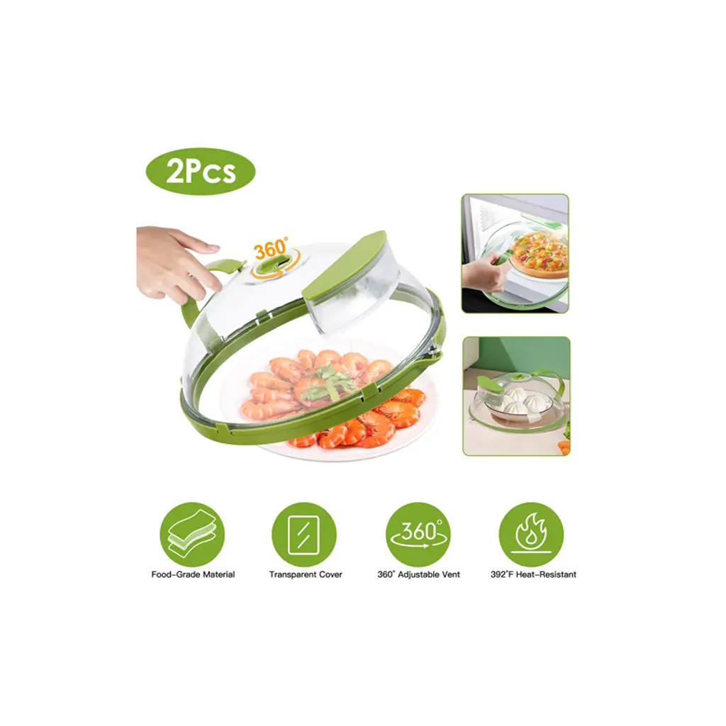 Newhome"2pcs Transparent Microwave Covers For Food, Splatter Guard Lid With Steam Vents & Handle"green