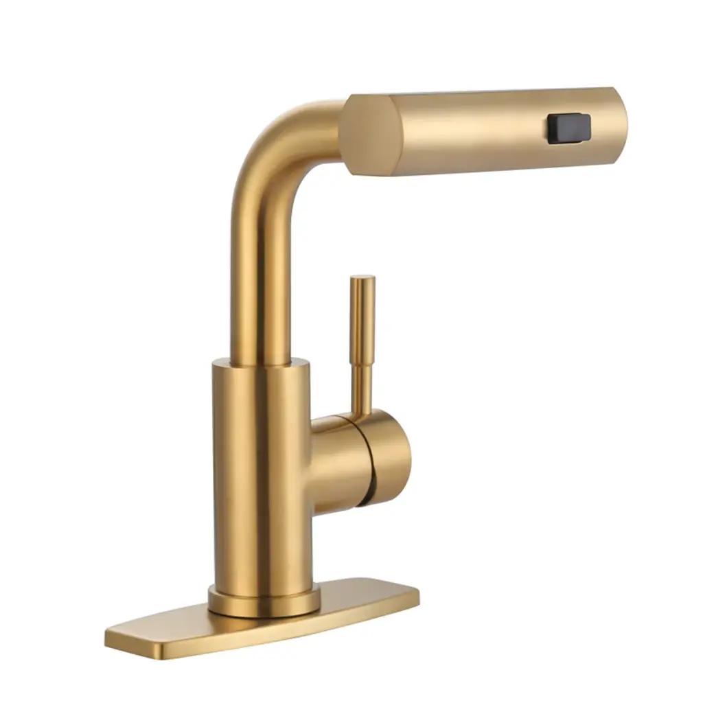 Nickel Gold Kitchen Sink Faucet With Deck Plate, Pull Out Sprayer