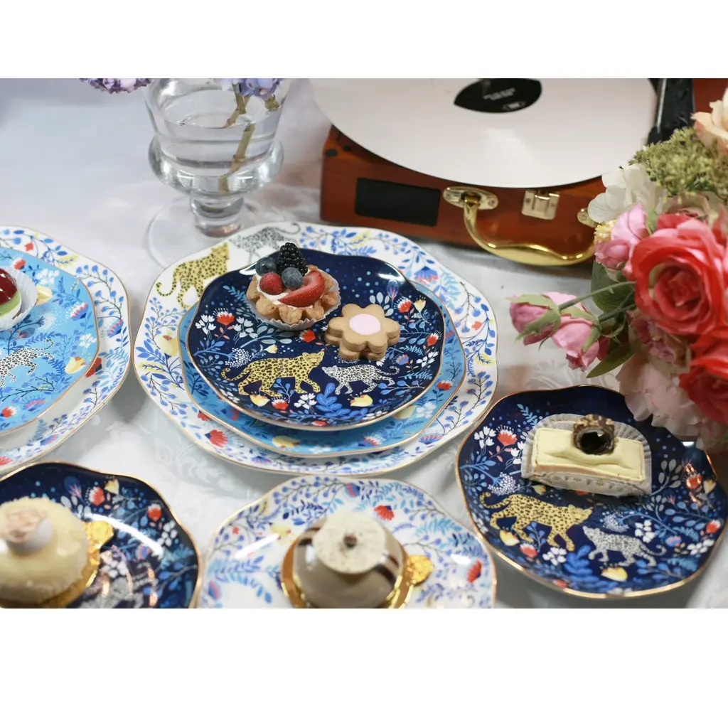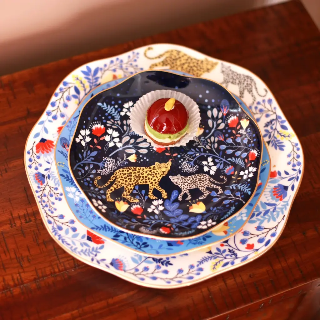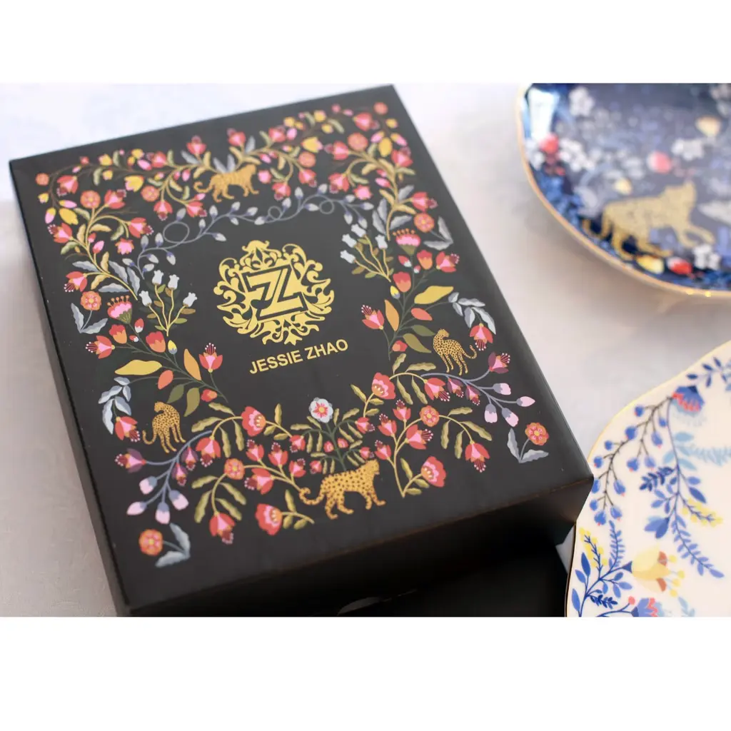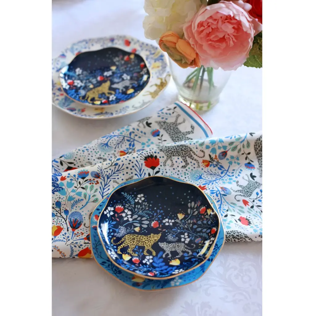 These Amazon Rain Forest Fine Bone China featured Amazon Rainforest creatures and the wonders of nature, connecting fine art and nature. Bright gold banding looks fantastic and provides superior strength. Starters, sides or sweets, true luxury is about following your intuition. Rich in colour, print and personality, this design will spark your imagination and add a pop of inspiring color and bold pattern to your table. Presented in our signature JZ gift box.
