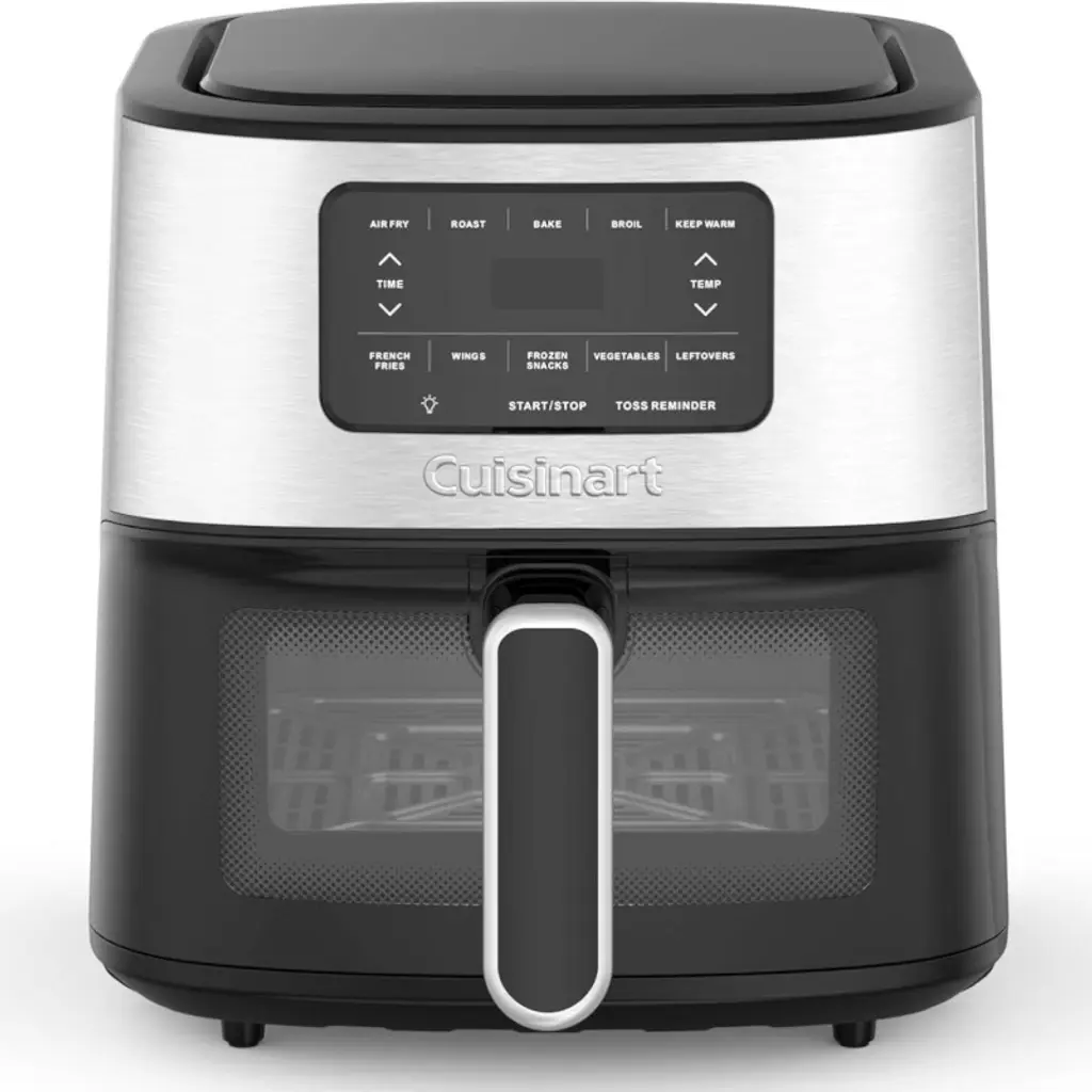 This ingenious air fryer prepares perfectly crispy fries, hot wings, balsamic brussels sprouts and Parmesan mushrooms all at the same time. Featuring two independent heaters, fans and fryer basketseach with two levels per basketthe DoubleStack technology lets you cook on two levels at different times and temperatures. Use the Smart Finish feature to ensure everything's ready to serve at once, or use the Match Cook function to cook the same in both baskets. Boasting the ability to air fry, air broil, roast, bake, reheat and dehydrate, the slim two-level Double Stack is a great choice for space-challenged countertops.