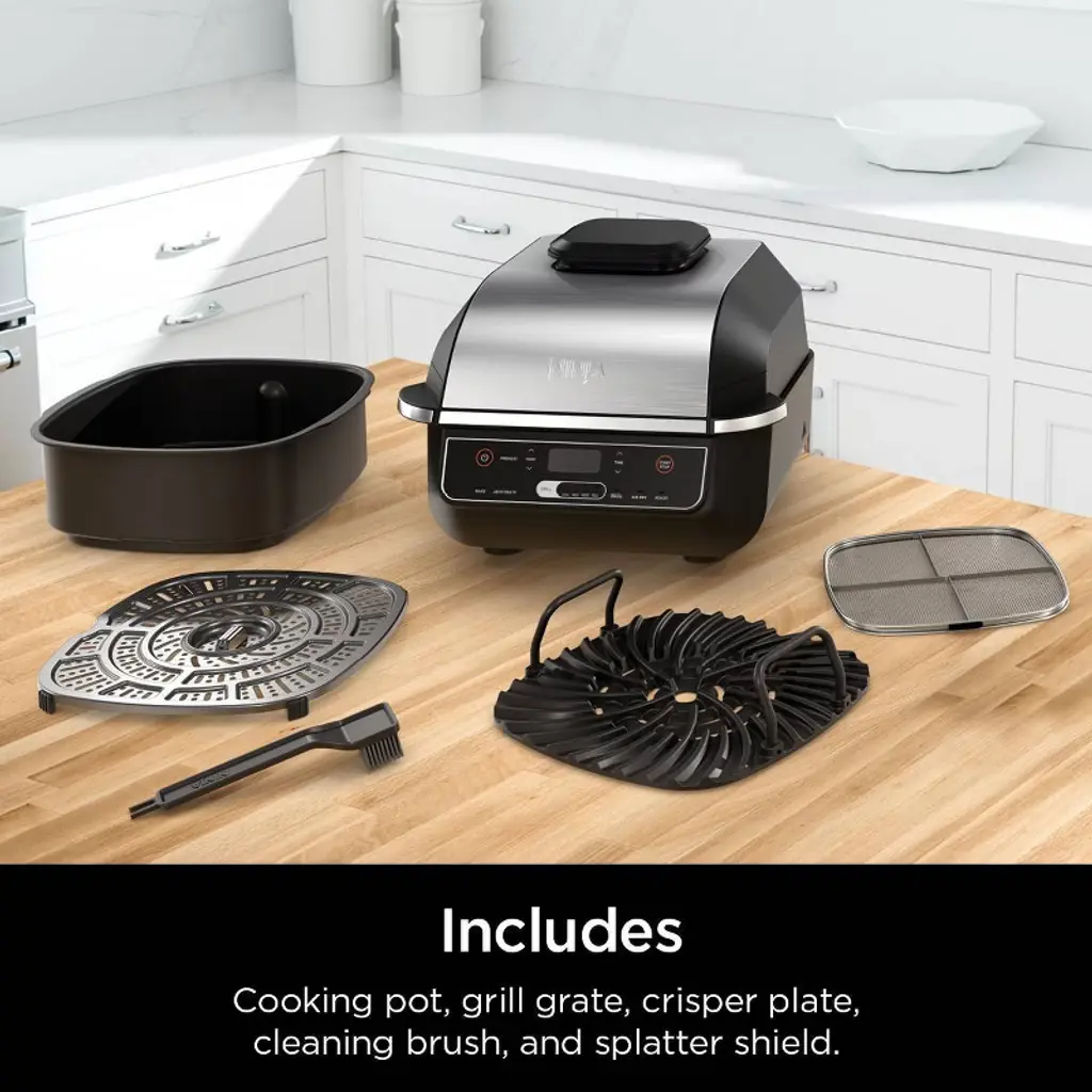 Ninja Foodi 6-in-1 Nonstick Indoor Grill Eg201: Smokeless, Cool Touch, Digital Display, Dishwasher-safe, Recipes Included