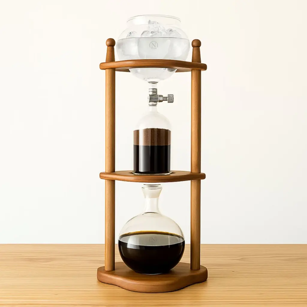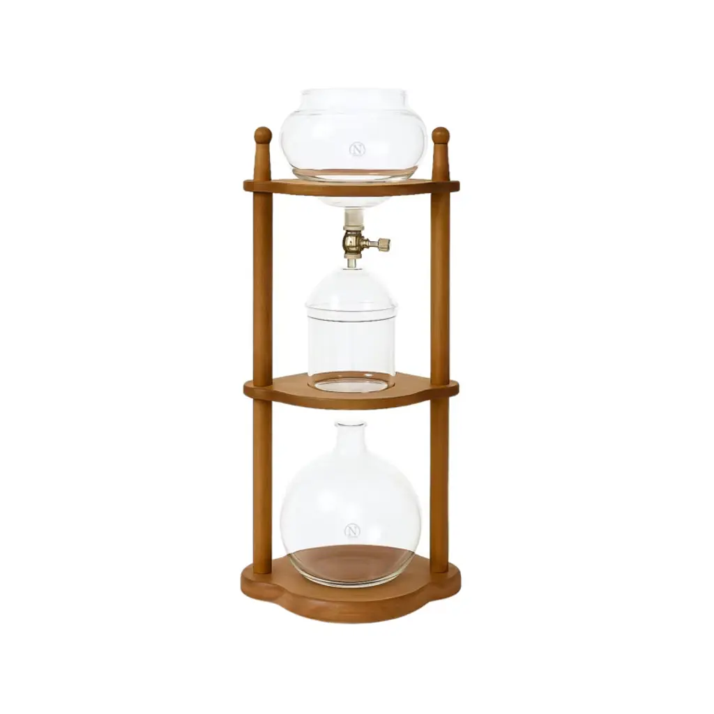 Nispira Cold Brew Coffee Maker Ice Coffee Drip Machine With Advanced Slow Drip Technology Borosilicate Glass With Wood Tower, 6-8 Cup, Brown