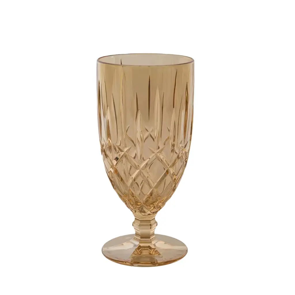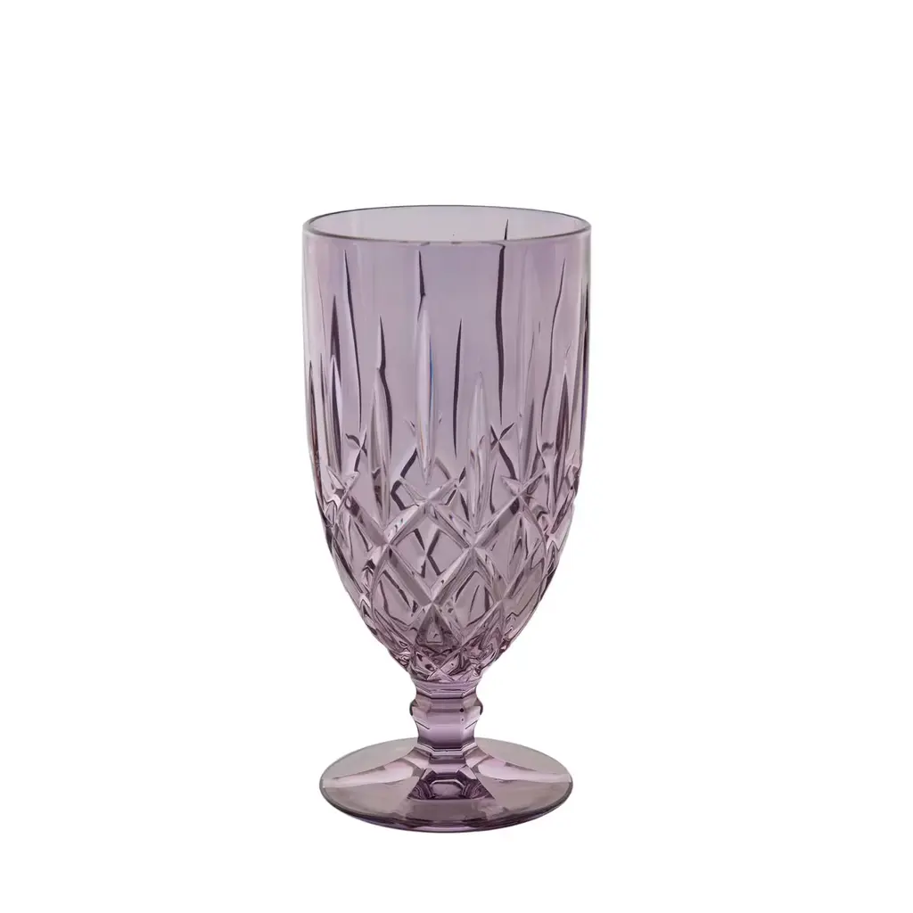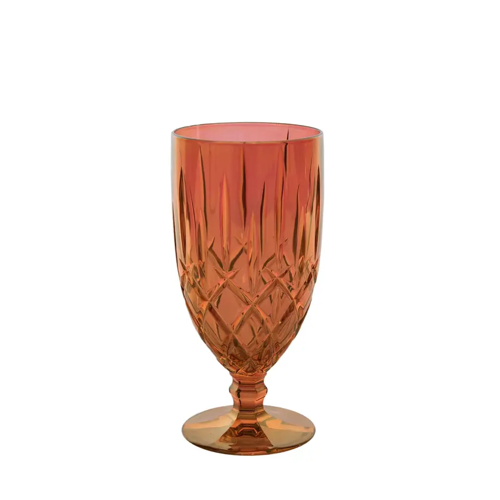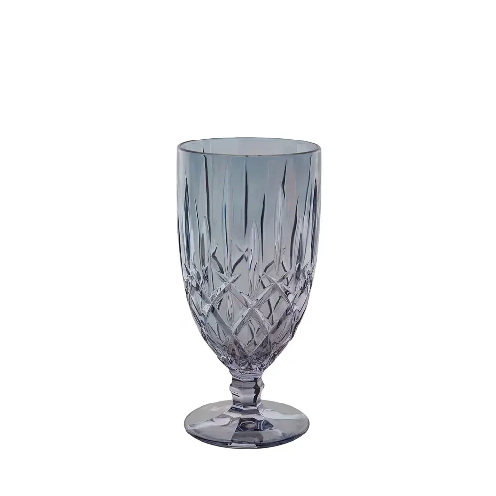 This set of six water glasses will make a charming addition to a modern decor. Marked by a round base, short stem, and capacious bowl, each glass is enriched with textural engravings and features a different hue.