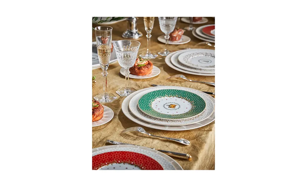Festive, fun and unexpected, the Bernardaud Noel Dinnerware Collection creates a magical yet elegant atmosphere for holiday entertaining. Glistening stars, champagne bubbles and other motifs delicately embrace the surfaces of each piece to highlight the most joyous meal of the year.