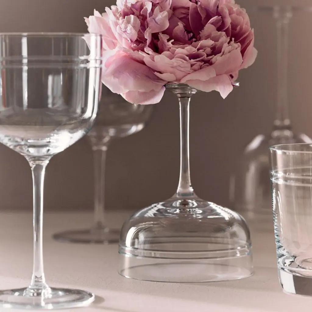 With its etched ring detail and slim stem, the Noemie coupe glass by goop is inspired by modern Parisian living. Made of remarkably thin crystalline glass for an elevated feel with incredible clarity, the straight-sided glass gently curves toward the stem, perfect for champagne or an elegant martini. Master artisans blow and etch each one by hand, lending a unique character to every glass. Crafted in southern Poland by Krosno, a world-renowned glassmaker producing high-quality stemware for over 100 years. CB2 exclusive.