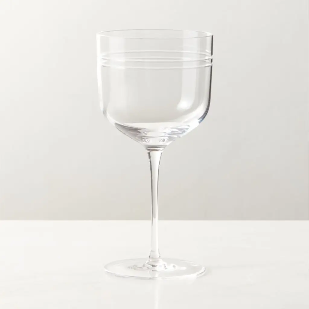 With its etched ring detail and slim stem, the Noemie white wine glass by goop is inspired by modern Parisian living. Made of remarkably thin crystalline glass for an elevated feel with incredible clarity, the straight-sided bowl gently curves toward the stem, allowing the wine to breathe. Master artisans blow and etch each one by hand, lending a unique character to every glass. Crafted in southern Poland by Krosno, a world-renowned glassmaker producing high-quality stemware for over 100 years. CB2 exclusive.