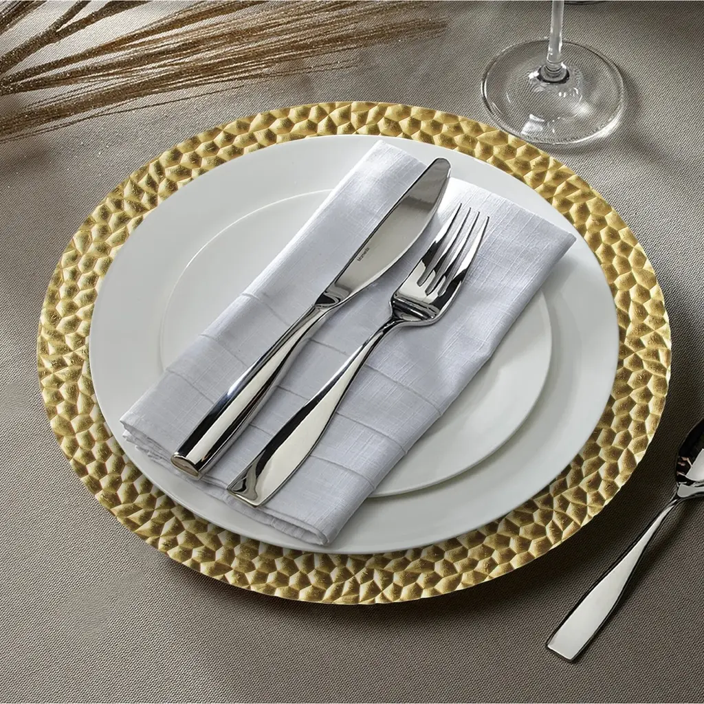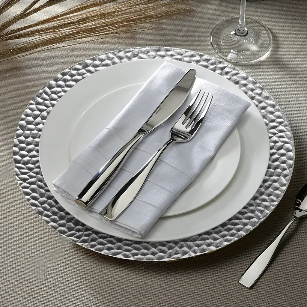 Crafted in high-quality 18/10 stainless steel, this place setting features a satin black finish with textured hammered detailing that adds sophistication to your tabletop. Crafted in high-quality 18/10 stainless steel Satin black finish 20-piece set includes: 4 dinner forks 4 salad forks 4 dinner knives 4 dinner spoons 4 teaspoons Dishwasher safe Imported At Frontgate, our primary focus is quality. We guarantee that every product we sell will stand up to the supreme test – our customers' satisfaction. To learn more about our policies, visit our Shipping & Processing, Returns & Exchanges and Warranty & Price Guarantee pages. Crafted in high-quality 18/10 stainless steel, this place setting features a satin black finish with textured hammered detailing that adds sophistication to your tabletop. Crafted in high-quality 18/10 stainless steel Satin black finish 20-piece set includes: 4 dinner forks 4 salad forks 4 dinner knives 4 dinner spoons 4 teaspoons Dishwasher safe Imported At Frontgate, our primary focus is quality. We guarantee that every product we sell will stand up to the supreme test – our customers' satisfaction. To learn more about our policies, visit our Shipping & Processing, Returns & Exchanges and Warranty & Price Guarantee pages.