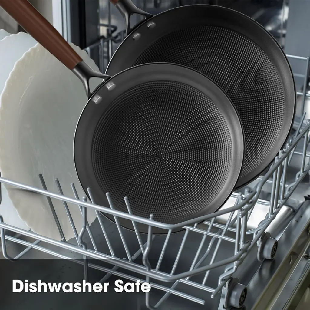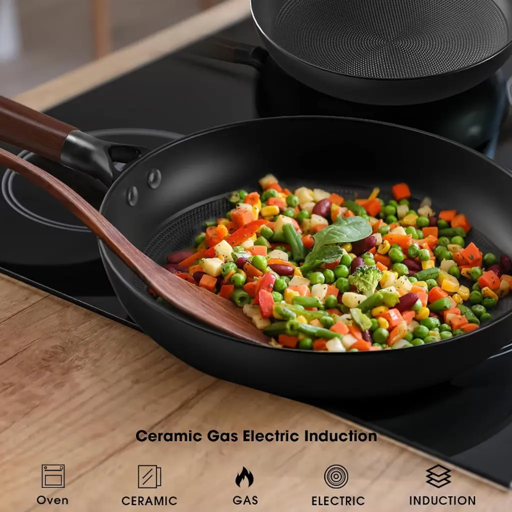 Nonstick Honeycomb Surface: This nonstick frying pan features a honeycomb pattern that keeps oil droplets locked in for a superior nonstick experience. Perfect for low-oil cooking and easy cleanup. Durable Cast Iron Skillet: Our cast iron skillet is made from high-quality cast iron, designed to last. This nonstick skillet can handle everyday cooking and high heat without warping or cracking, making it a reliable choice among nonstick pans. Light and Tough: With thin walls and a thick bottom, this non stick frying pan is less bulky. It¡¯s scratch-resistant, rust-resistant, and is not easy to deform. The ergonomic handle ensures a comfortable grip and stability, ideal for all your cooking needs. Removable Wooden Handle: Made of high-quality acacia wood, the handle is easy to install and remove. It¡¯s heat-resistant and stylish, featuring a hanging loop for convenient storage. Easy to Clean: This non stick pan ensures food won¡¯t stick, and it¡¯s easy to clean. While it¡¯s dishwasher safe (just remove the handle first), hand washing is recommended for the best results. Compatible with All Cooktops: Whether you use gas, electric, or induction stoves, this versatile cast iron skillet works on all types of cooktops, making it a great addition to your collection of skillets and frying pans. Tips: To extend the life of your nonstick frying pan, it¡¯s best to thoroughly dry it with a cloth after washing to prevent rust. Store the pan in a dry place and avoid moisture.