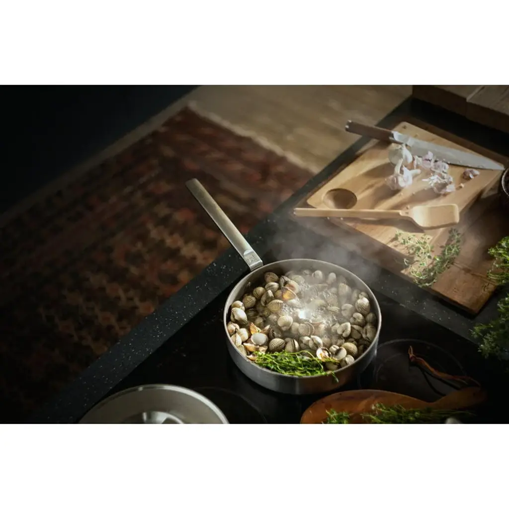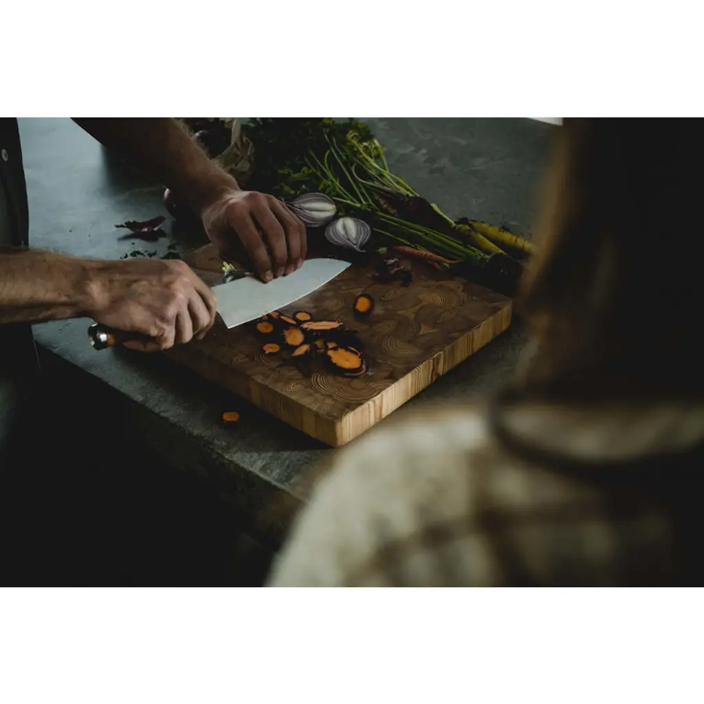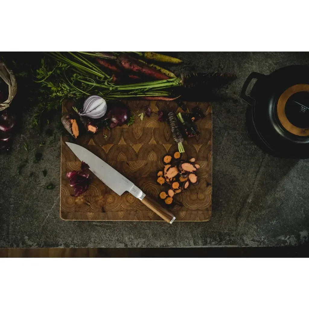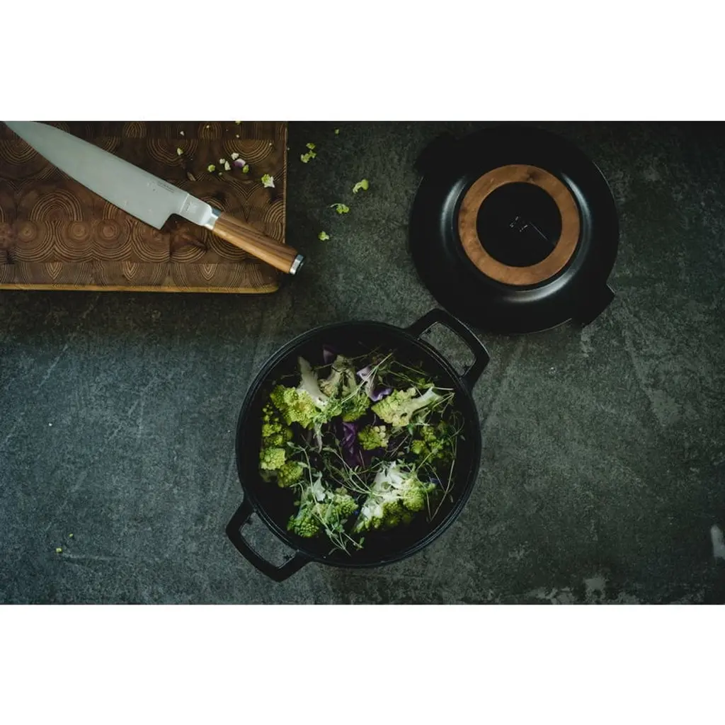 Fiskars Norden cook's knife features a sharp steel blade and a sturdy handle coated with Finnish steel wood. The knife is a member of Fiskars' top-quality cookware range inspired by Nordic cooking traditions and Finnish knife-making heritage. Designed in Finland, the Norden collection is made using strong, durable and easy-to-maintenance materials such as steel, cast iron and wood. Fiskars Norden is a winner of Australia's Good Design Award 2018 and the Red Dot Design Award 2018.