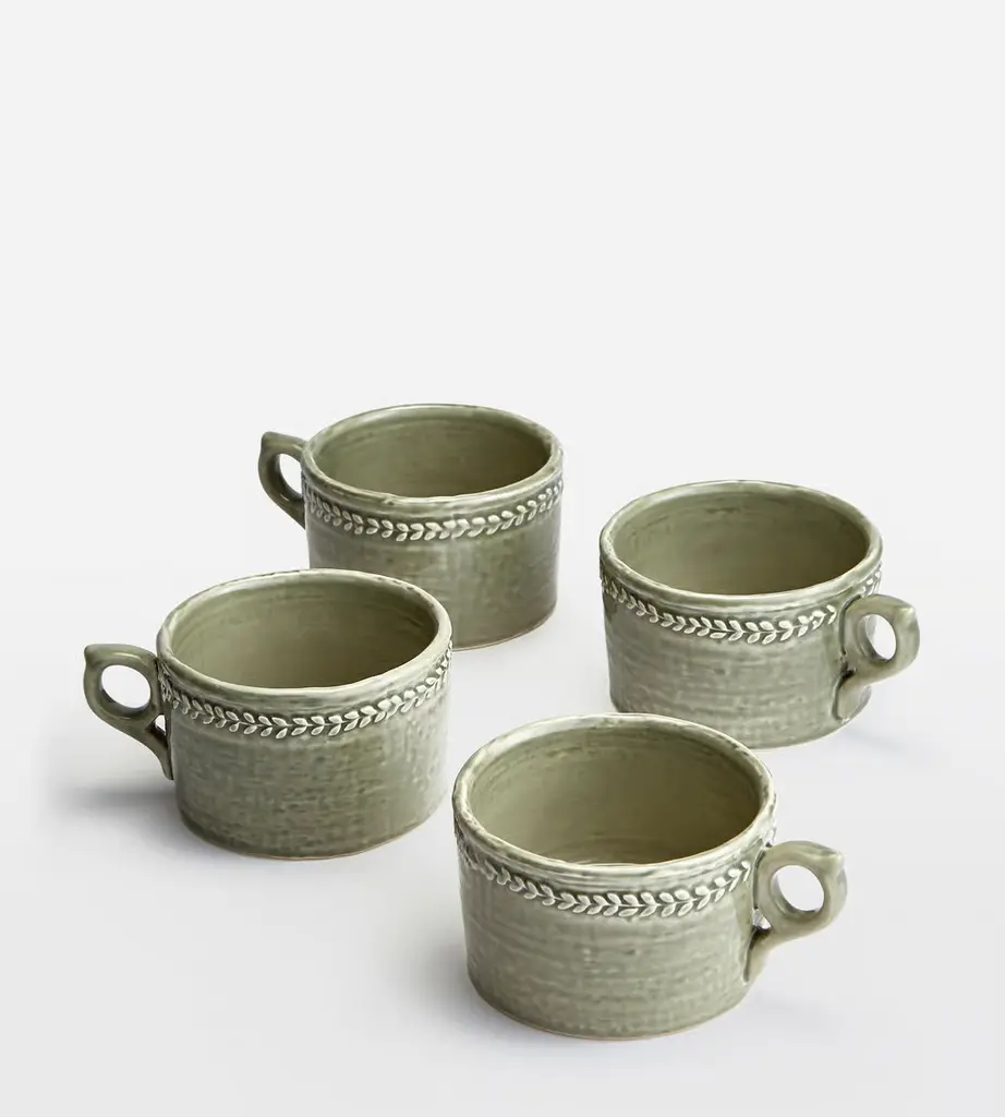 The Mallorca collection captures the natural landscape of the famous Mediterranean island, a haven of turquoise waters, soft golden sands, and impressive cliffs. Mallorca shares its DNA with our Eivissa collection, featuring reactive glazes of sand-beige and sea-blue patterns. Yet, its soft and scalloped edges suggest a more exquisite look. Combine both shapes for a casual and eclectic look. Due to the reactive glazes, the blended patterns of sand beige and sea blue will vary slightly, making each piece one-of-a-kind.