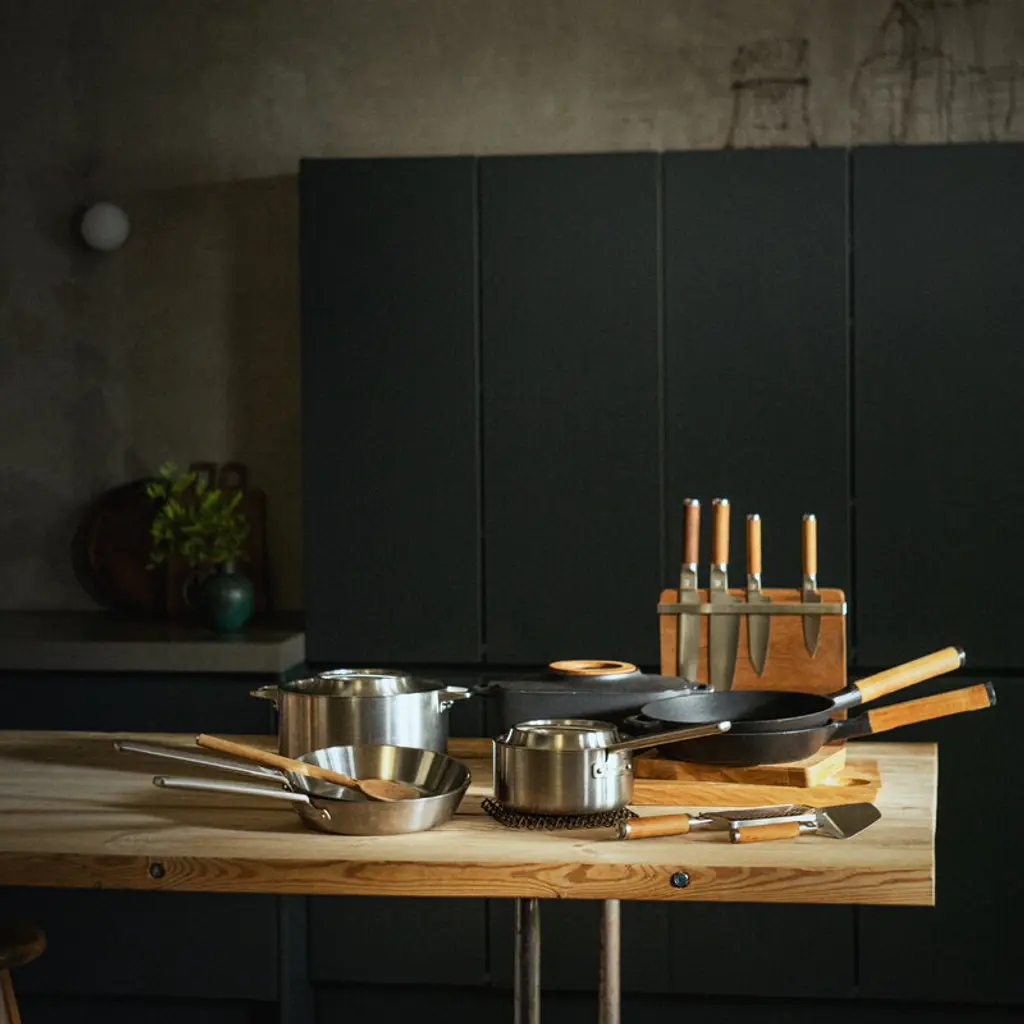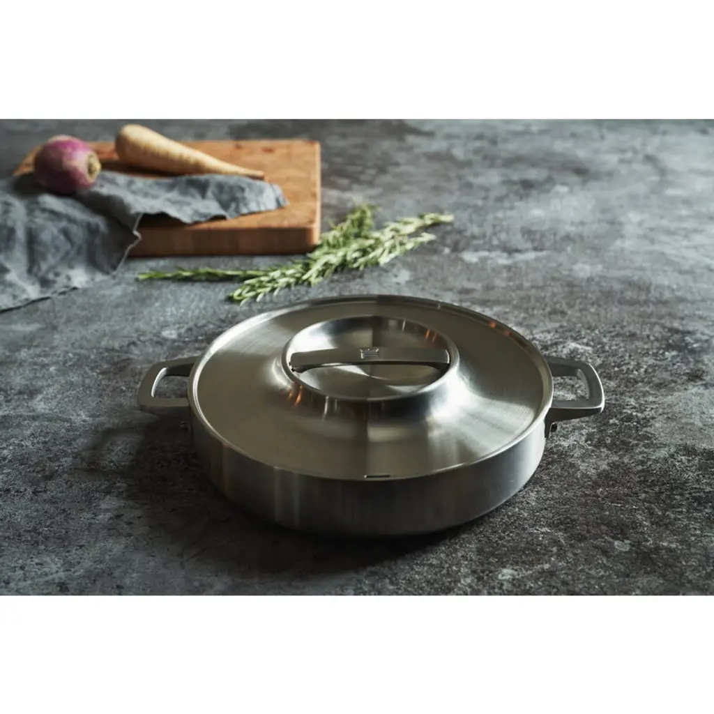 Fiskars' Norden steel roasting dish is ideal for preparing risottos and gratins or roasting meat to perfection. The multi-ply construction and thick bases of the Norden cookware provide an even heat distribution, and the ergonomic handles are designed to minimize heat transfer. Due to the unique Ceratec coating and Thermium mineral treatment, the pan has a non-stick surface that is suitable for high-temperature frying and oven cooking at up to 270°C. Equipped with a lid, the Norden roasting dish is a member of Fiskars' top-quality cookware range inspired by Nordic cooking traditions and Finnish knife-making heritage. The Norden collection is made in Finland using strong, durable and easy-to-maintenance materials such as steel, cast iron and wood. Fiskars Norden is a winner of Australia's Good Design Award 2018 and the Red Dot Design Award 2018.