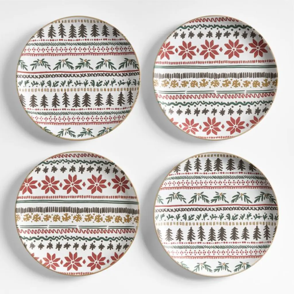 Nordic Fair Isle Stoneware Salad Plates, Set Of 4