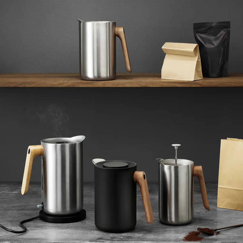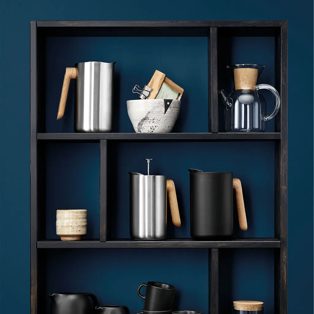 Keep your coffee or tea hot for longer with a jug that will also make your kitchen look more stylish. A product you’ll proudly leave on display on a table, the Nordic Vacuum Jug from Eva Solo features a blend of Scandinavian design and function. The vacuum jug combines rustic and modern design cues. The wooden handle is made of oiled oak and offers a perfect grip, while the high-quality black plastic body boasts a matte finish. Inside the jug, a stainless steel insert maintains the temperature of your coffee for a long time. The stainless steel pouring lip ensures that every pour is drip-free. Made in Denmark, the Nordic Vacuum Jug joins the extended Nordic Kitchen family designed by iconic brand Eva Solo.