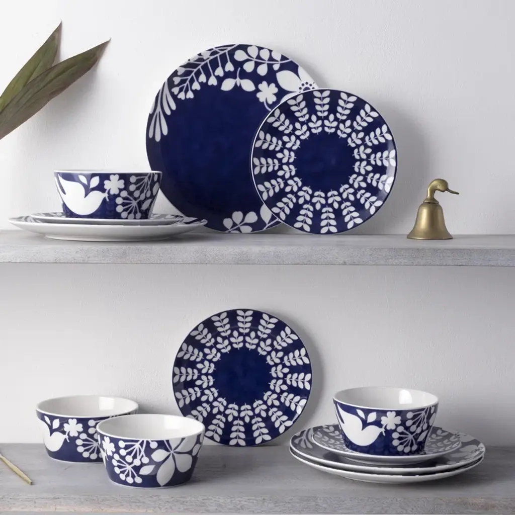 Bluefjord is a Scandinavian-inspired design that is blooming with crisp white whimsically-stylized floral motifs on a deep blue surface. Each piece incorporates these varied motifs in different ways that create a delightfully inspired mix-and-match place setting. The variation of design continues with the accessory pieces, resulting in a complete, yet eclectic, collection. Bluefjord offers traditional place setting components as well as serving pieces. This pattern is designed for daily use and is dishwasher safe.
