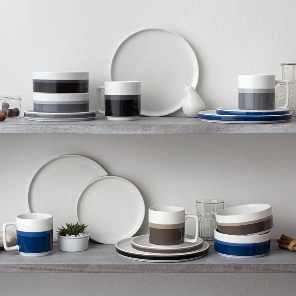 ColorStax is a collection of modular dinnerware crafted in porcelain. ColorStax dinnerware is available in multiple colorways which blend the hues artfully from light to dark. The items in this collection are designed to fit together, with plates acting as lids for the bowls. This collection looks striking both on the table and on the shelf, and offers sets, individual dining pieces, and serving items. ColorStax dinnerware is durable, safe to use in the microwave and dishwasher, and is designed for daily use.