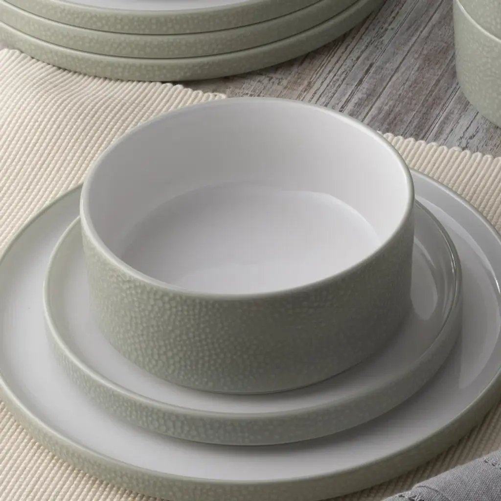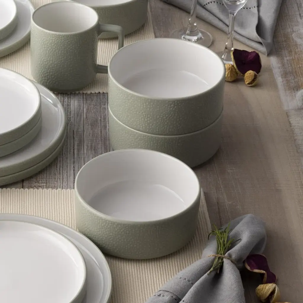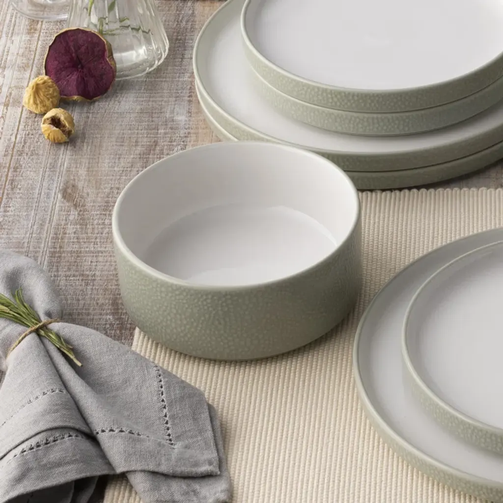 The ColorTex dinnerware collection offers a clean, minimalist look for all of your gatherings. This collection in durable white porcelain is perfectly designed to transition from casual meals to more elegant events. This collection features items that fit together for ultimate functionality and style. The mini plate is a lid for the mini bowl and the mug; the small plate is a lid for the cereal bowl; the salad plate is a lid for the deep plate; the dinner plate is a lid for the serving bowl. ColorTex is microwave and dishwasher safe.
