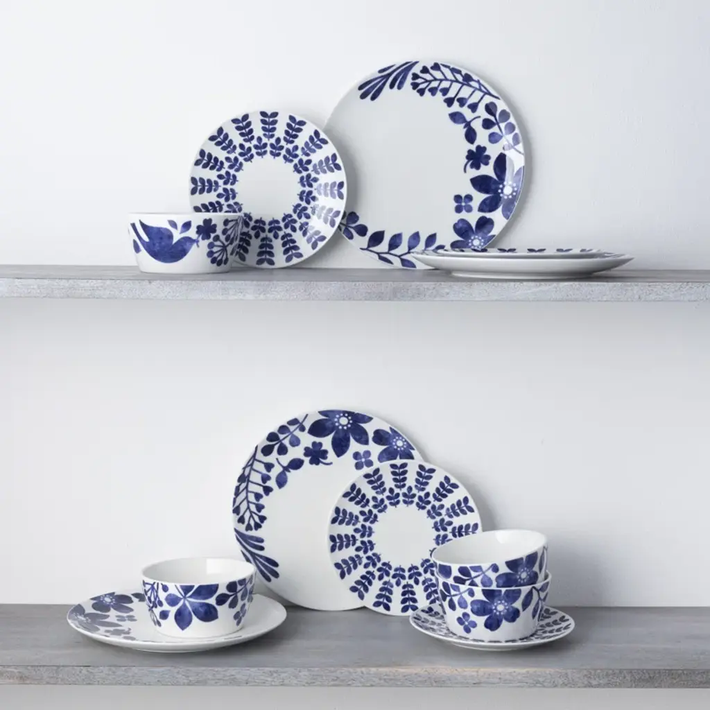 Sandefjord is a Scandinavian-inspired design that is blooming with deep blue, whimsically-stylized floral motifs. Each piece incorporates these varied motifs in different ways that create a delightfully inspired mix-and-match place setting. The variation of design continues with the accessory pieces, resulting in a complete, yet eclectic, collection. Sandefjord offers traditional place setting components as well as serving pieces. This pattern is designed for daily use and is dishwasher safe.