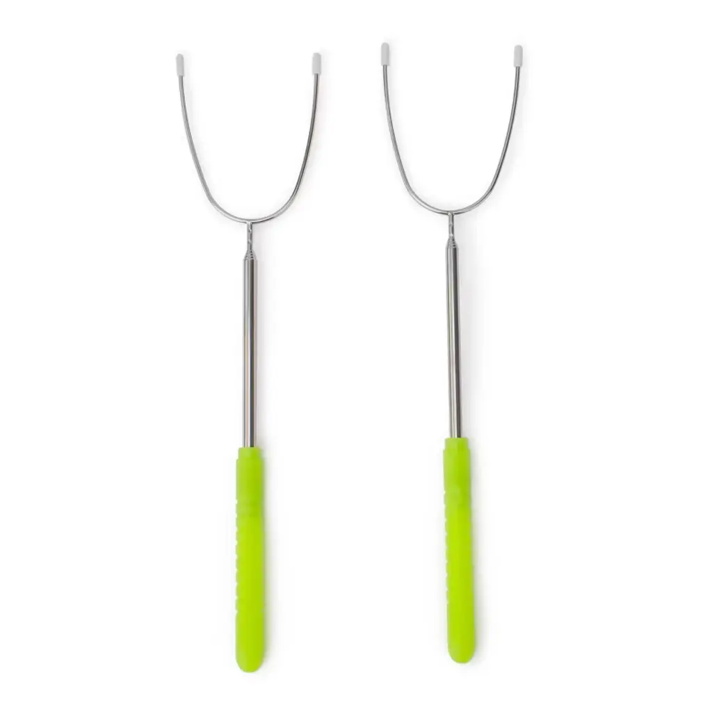 The Norpro Glow-in-the-Dark Telescoping Marshmallow & Hot Dog Forks make campfire cooking fun and safe. This set of 2 extendable roasting sticks features glow-in-the-dark handles for easy visibility at night and telescoping shafts that reach up to 27 inches. Great for marshmallows, hot dogs, and more—perfect for camping, fire pits, and backyard fun.