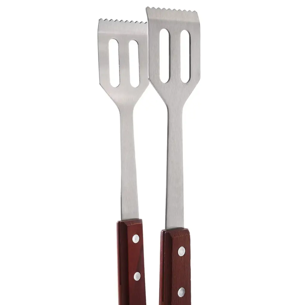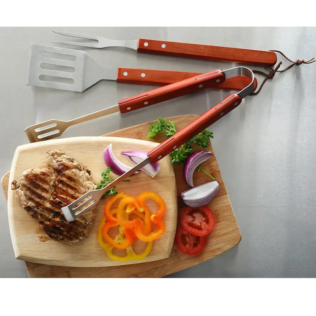 Norpro Stainless Steel And Wood 3 Piece Bbq Set With Spatula, Tongs, And Fork