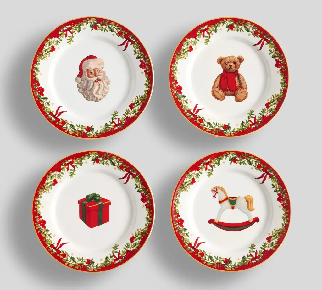 Nostalgic Christmas Icon Stoneware Appetizer Plates - Mixed Set Of 4