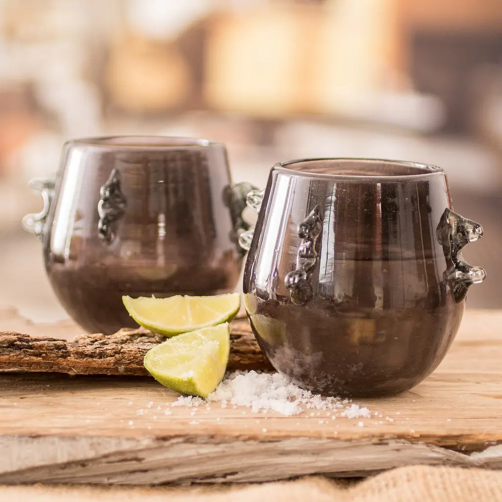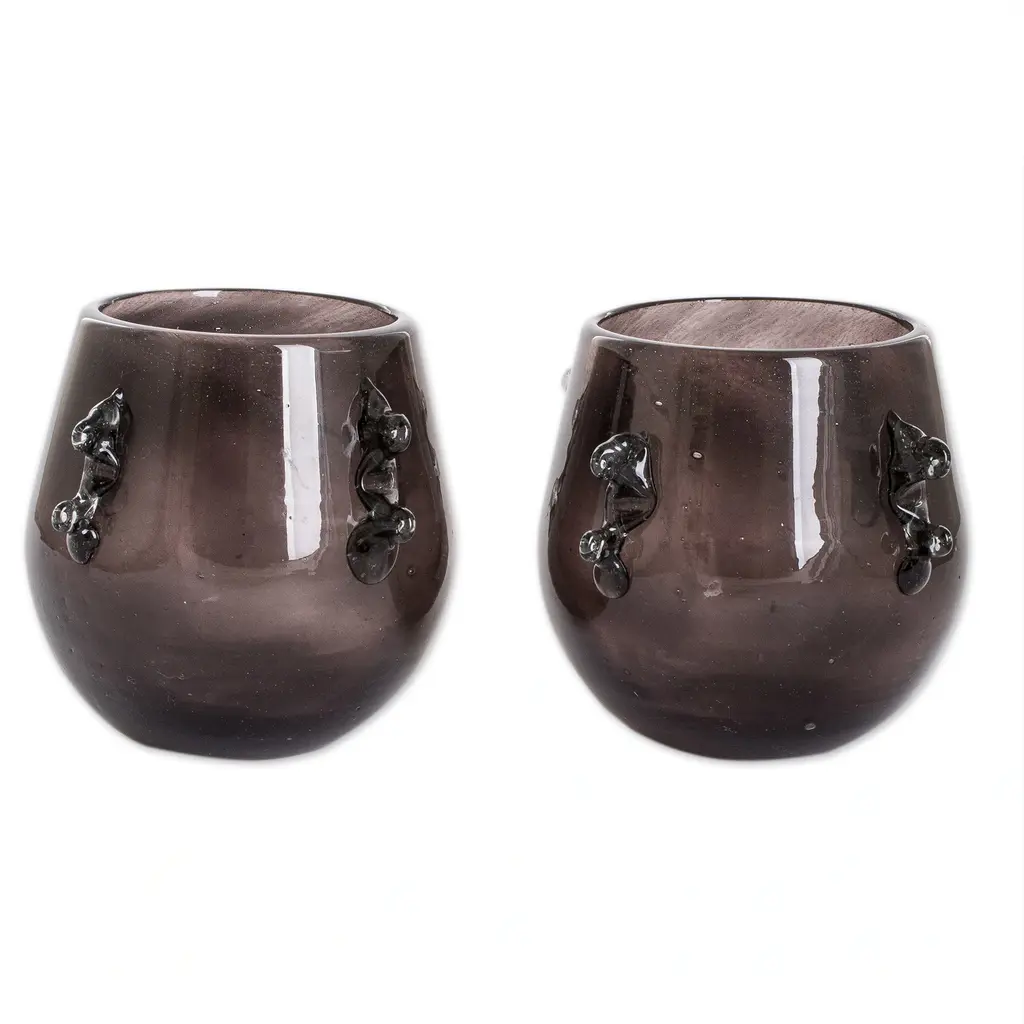 Novica Handmade Shadow Shot Handblown Rocks Glasses (Pair) - Black