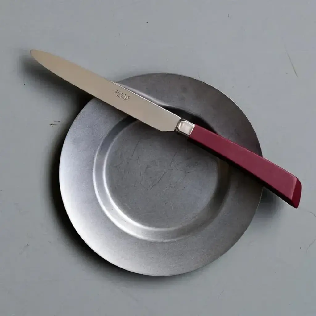 To celebrate Sabre Paris's 30th anniversary, Numero 1 was reissued in 2023. Three decades after its creation, it comes back with the same sharp edge. A duality of materials that reveals all its character. Bias-cut wood handles in pale or charcoal tones that opt for understatement. Apparent minimalism that contrasts with the flash of the blades, crafted in luminous steel. Savoir-faire that remains in the background to showcase the cutlery’s beauty. Established in France in 1993 by Francis Gelb, Sabre Paris is renowned for the vast assortment of printed mix-and-match acrylic designs in its library. All pieces made in France using 18/10 stainless steel. Dishwasher safe.