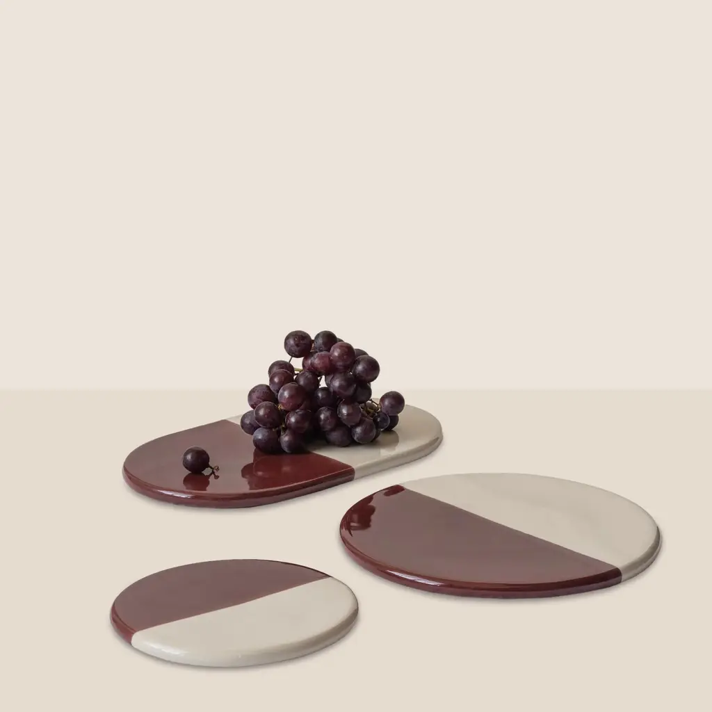 Nuna — an ancient name meaning "land"— the Nuna collection blends grounded elegance with everyday versatility. This small glazed stoneware platter protects surfaces under plant pots, serves as a beautiful centerpiece, or works as a food-safe dish for snacks. Crafted from glazed stoneware by artisans in Portugal, it’s moisture-resistant, dishwasher-safe, and effortlessly refined.