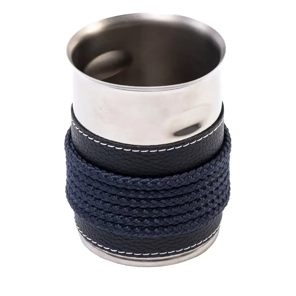 The Ocean Ice Bucket is a partially leather-covered insulated double-chamber steel ice bucket with a chrome-plated finish. Provided with lid (Ø cm 16 | h. cm 19). The ocean Bottle Cooler is a partially leather-covered insulated double-chamber chrome-plated steel cooler. It keeps bottles chilled for several hours (Ø cm 13 | h. cm 21.5).