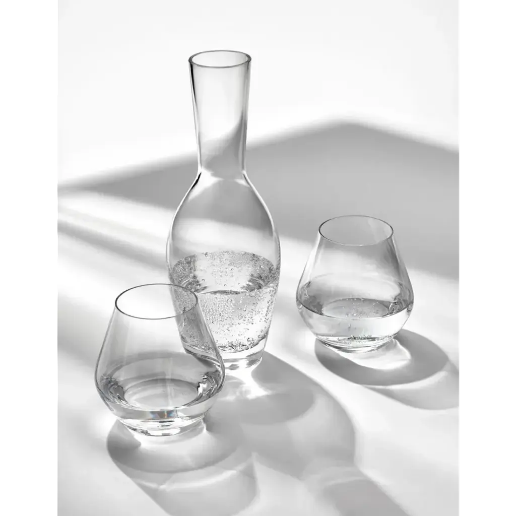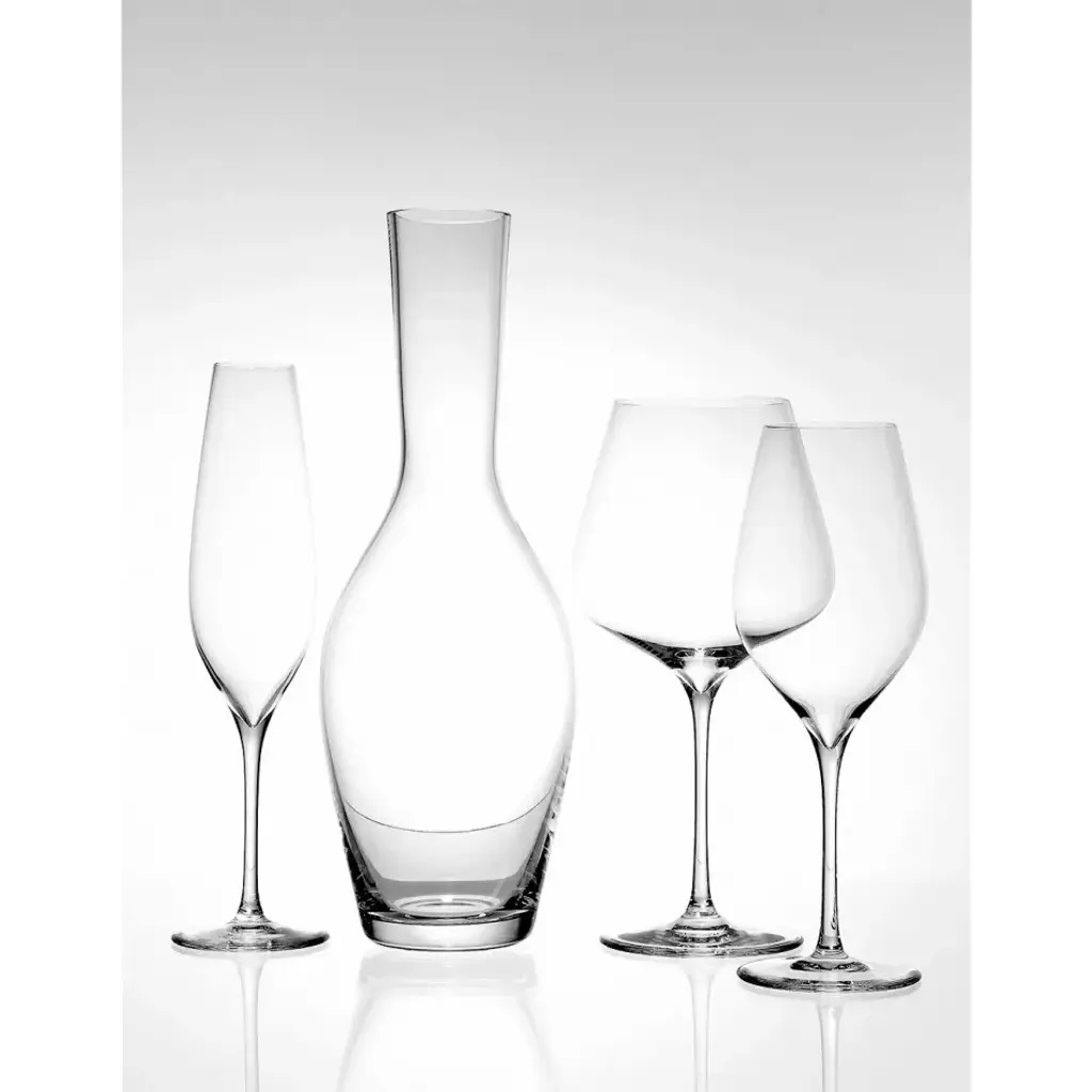 Designed by Slovak artist Patrick Illo, the Oeno pattern is named after the Greek goddess of wine who had the ability to turn anything into this highly coveted fermented beverage – a trait no doubt learned from her grandfather, the Greek god of wine Dionysus. Whether used for wine or lighter refreshments, the simple, clean lines of this carafe belie its substantial weight. Founded in 1857, Moser boasts a long tradition of superior artistic and technical standards in lead-free crystal. The quality of the crystal and perfection of Moser's hand cutting, engraving, gilding and brilliant colors are unsurpassed by any contemporary glass or crystal company in the world. Created by Ludwig Moser & Sons, the line originated as an engraving studio in the spa town of Karlsbad, located in Bohemia (now the Czech Republic), a region with deep roots in superior glass-making. During the late 19th and early 20th centuries, Moser developed its now famous technically perfect crystal production, employing a unique formula for producing a substance as hard as rock and as brilliant as lead crystal - but without using a trace of lead. This composition is very suitable for Moser's marvelous engravings, is ecologically sound and remains free of all concerns associated with lead. Moser's innovative techniques in cutting, engraving and coloring quickly won the line great acclaim at many prestigious international art exhibitions. Soon Moser became the proud possession of royalty, heads of state and well-known personalities throughout the world, an esteemed reputation that has held fast and continues to grow now in the 21st century. Today, Moser produces a wide range of stem and barware, holloware, accessories, giftware and art glass, all showcasing the superior quality, innovation and remarkable artistic expression for which the line has long been recognized.