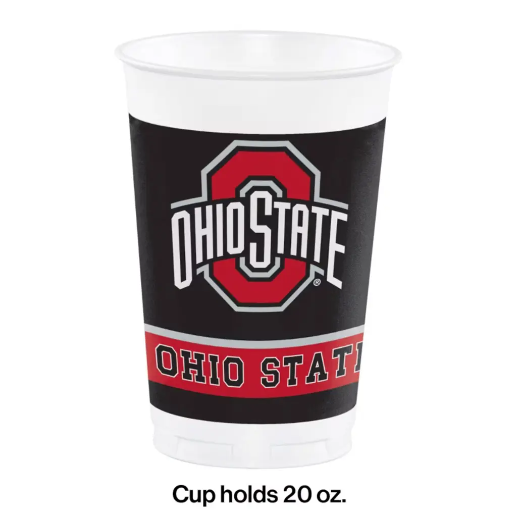Serve your tailgate drinks in style with these 20 oz. Ohio State University Plastic Cups. The sturdy plastic cups feature the Buckeyes' logo and school colors and will surely display your team pride. Sold in packs of 24, coordinate the reusable cup with other Ohio State University theme party supplies.