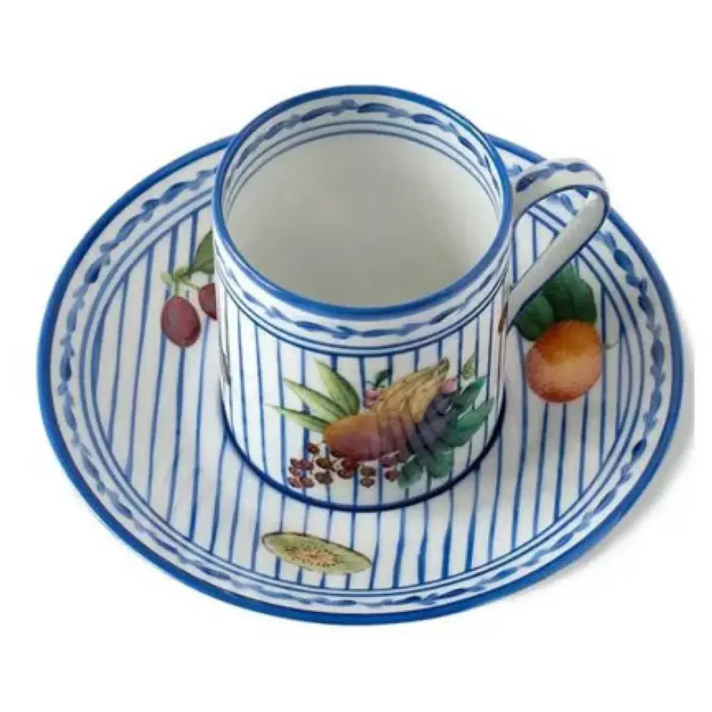 Oiseau Bleu Fruits Tea Cups & Saucers Cup 3 3/4", 6 Oz, Saucer 6" Dia Set Of 2