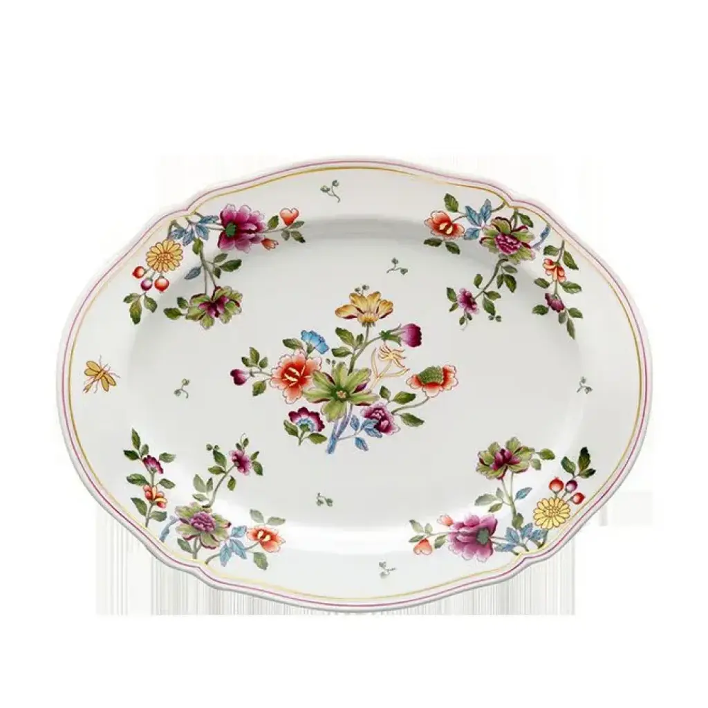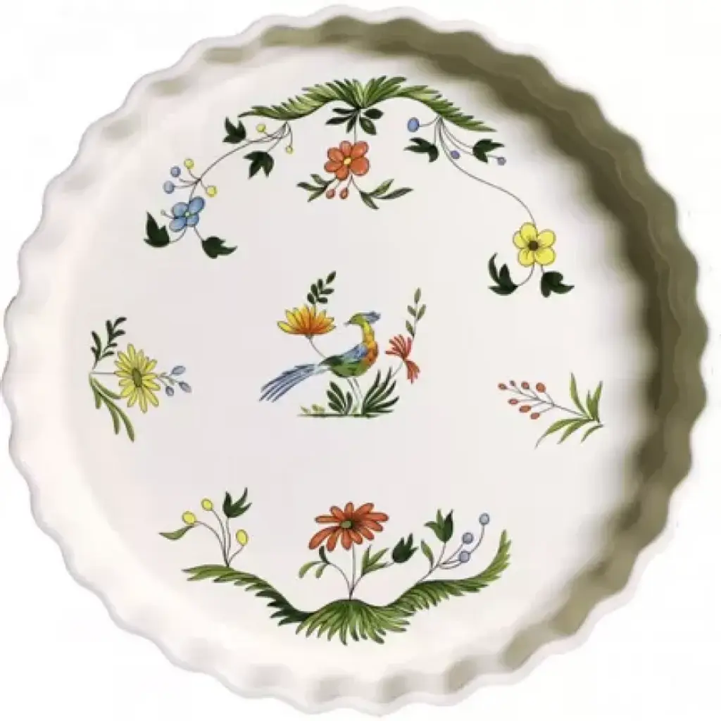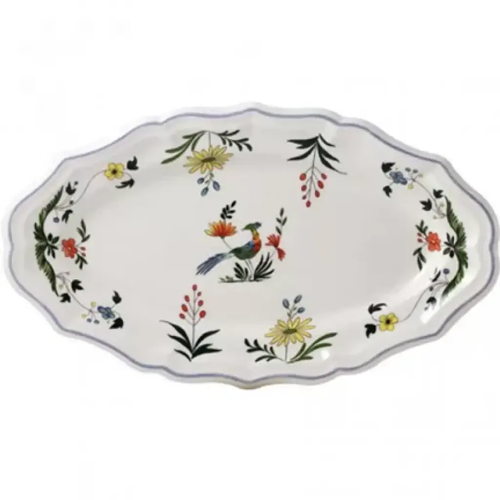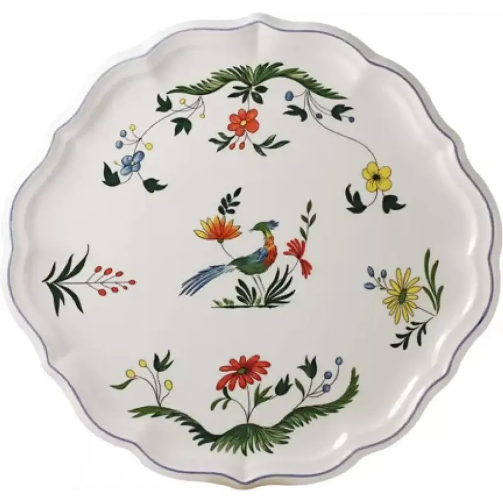 Translated as "Birds of Paradise" in English, Gien's Oiseaux de Paradis dinnerware was first designed in 1865 and has been popular ever since. Oiseaux de Paradis is the artist's poem to exotic birds and flowers. Faience earthenware made in France by Gien. Four-piece place setting includes dinner plate, dessert plate, bowl, and mug. Five-piece place setting includes dinner plate, dessert plate, canape plate, US tea cup, and saucer. A perfect companion pattern for Oiseau Blue Fruits. Located near the Loire Valley castles, the Faïencerie de Gien has been synonymous with prestigious faience tableware and decorative objects since its founding in 1821. Gien pieces are renowned for their warm white clays decorated with traditional motifs reminiscent of the French countryside.