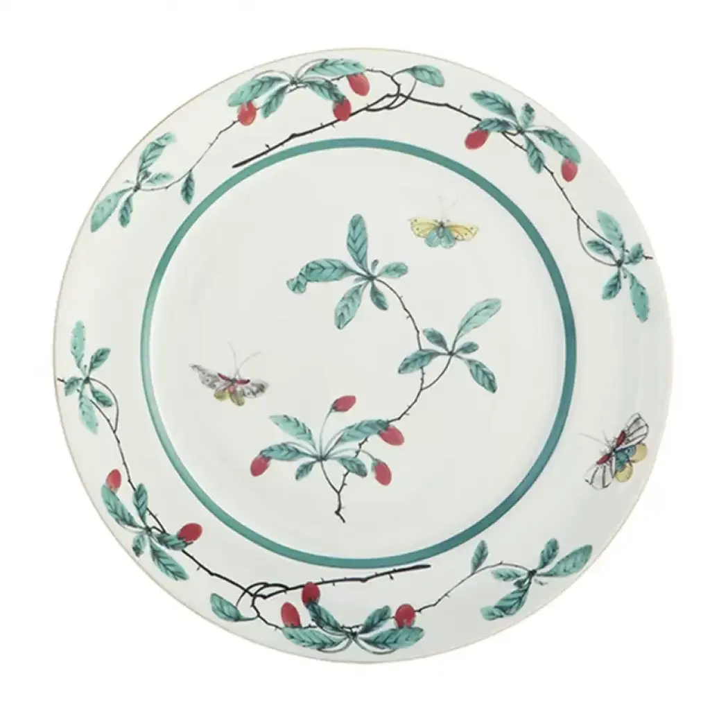 Translated as "Birds of Paradise" in English, Gien's Oiseaux de Paradis dinnerware was first designed in 1865 and has been popular ever since. Oiseaux de Paradis is the artist's poem to exotic birds and flowers. Faience earthenware made in France by Gien. Four-piece place setting includes dinner plate, dessert plate, bowl, and mug. Five-piece place setting includes dinner plate, dessert plate, canape plate, US tea cup, and saucer. A perfect companion pattern for Oiseau Blue Fruits. Located near the Loire Valley castles, the Faïencerie de Gien has been synonymous with prestigious faience tableware and decorative objects since its founding in 1821. Gien pieces are renowned for their warm white clays decorated with traditional motifs reminiscent of the French countryside.