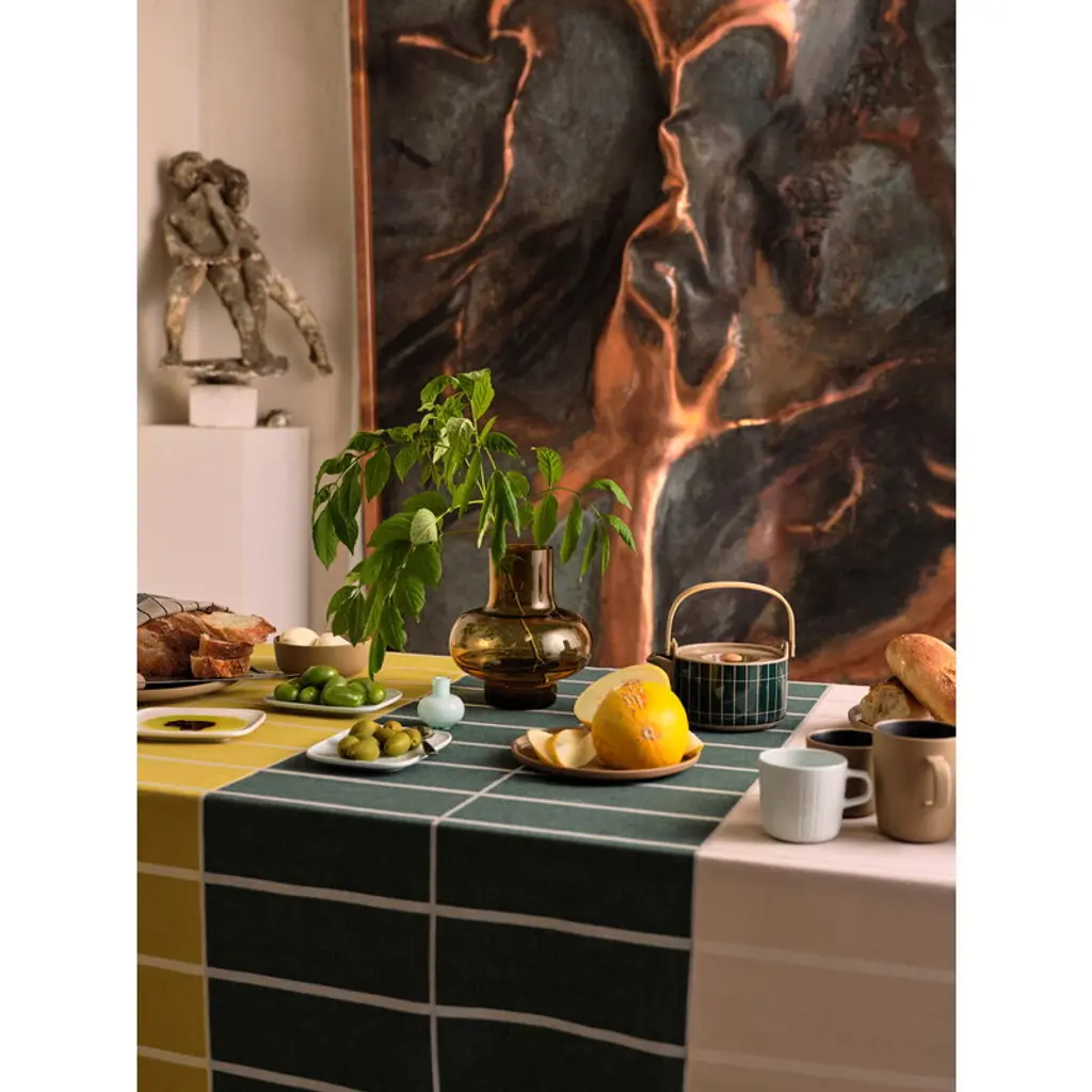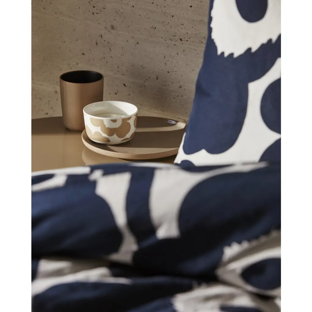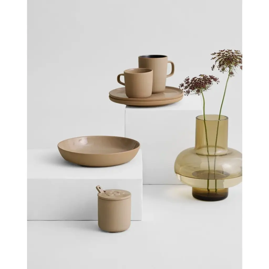 Marimekko’s Oiva mug combines a sleek minimalistic form with a touch of rustic appeal. Made of brown stoneware with no glaze on the outside and a matte black glaze on the inside, the mug has an intriguing raw texture and organic look. The rustic feel is enhanced by the natural variations in color, characteristic of the material, that make each mug unique. The clean-lined Oiva tableware collection includes cups, bowls, plates and tea pots, all of which you can combine in an almost infinite number of ways. Combine the different pieces according to your mood, to the friends you will invite, to the food you will serve or to the textiles you will set the table with – you can always create the perfect atmosphere for that particular occasion. The Marimekko Oiva tableware collection is designed by Sami Ruotsalainen.