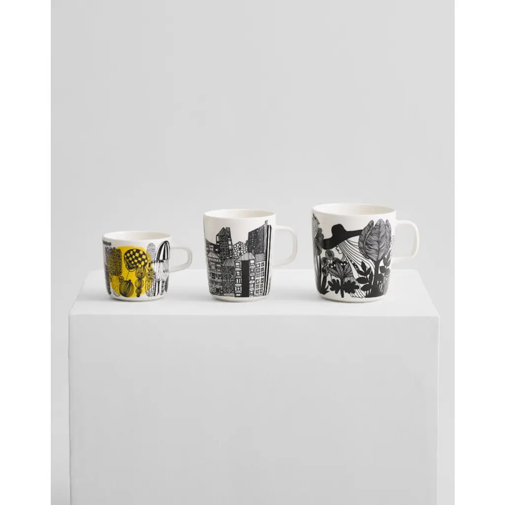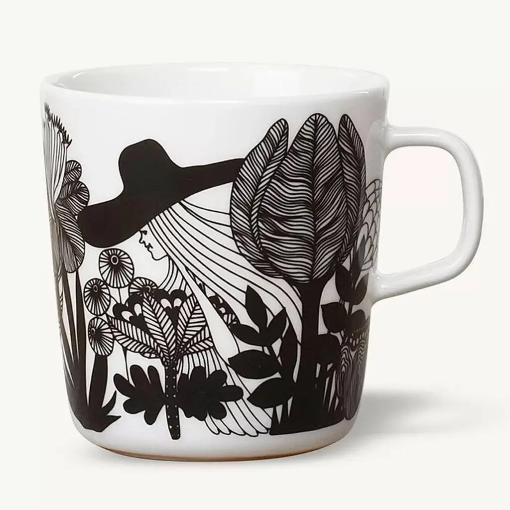 Marimekko’s Siirtolapuutarha mug features Maija Louekari’s cheerful pattern that depicts beautiful summer flowers growing in allotment gardens. Marimekko's Siirtolapuutarha collection has a pleasant feel of nostalgia. The clean, streamlined Oiva ceramic tableware was designed by Sami Ruotsalainen, and the Siirtolapuutarha and Räsymatto patterns were drawn by Maija Louekari. They tell stories about country life in an urban environment. The collection’s cups, mugs, bowls, plates and textiles can be combined in various ways and according to mood and occasion – they are perfect for both everyday use and festivities. Räsymatto and Siirtolapuutarha will cheer up your home for years to come.