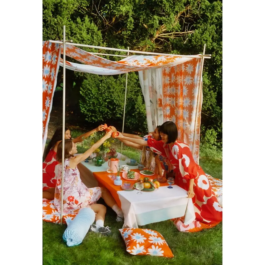 Marimekko’s Ukonhattu serving dish is adorned with a colorful botanical pattern designed by Fujiwo Ishimoto in 1993. True to Ishimoto’s signature style, the motif is inspired directly by nature: the Ukonhattu pattern is in full bloom with vibrant flowers and foliage. The Ukonhattu serving dish is part of Sami Ruotsalainen’s clean-lined Oiva tableware collection that suits both casual and festive settings. The versatile platter is also suitable for cooking as it is made from ovenproof stoneware.