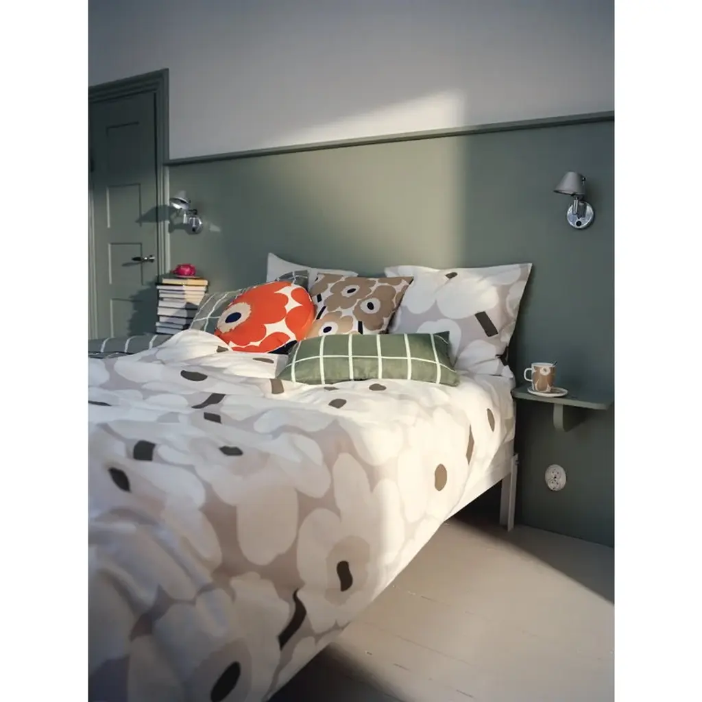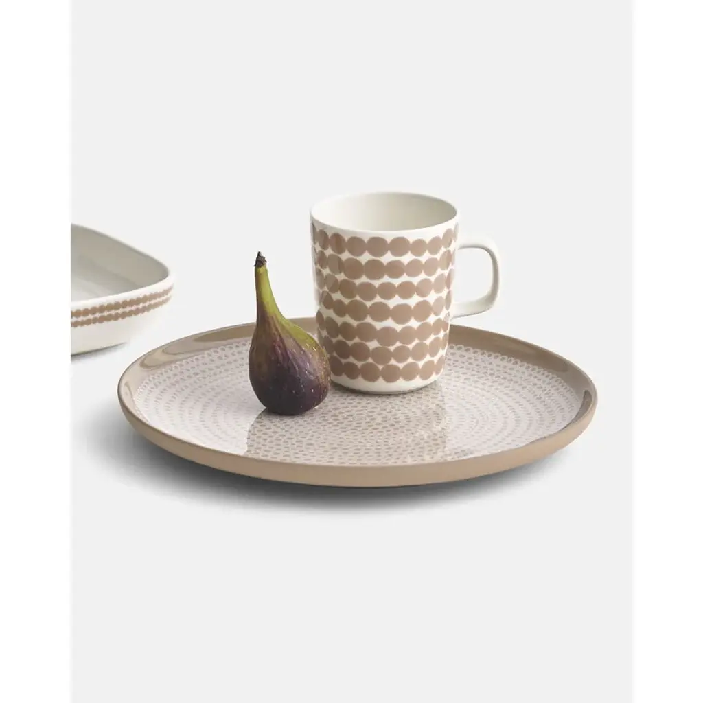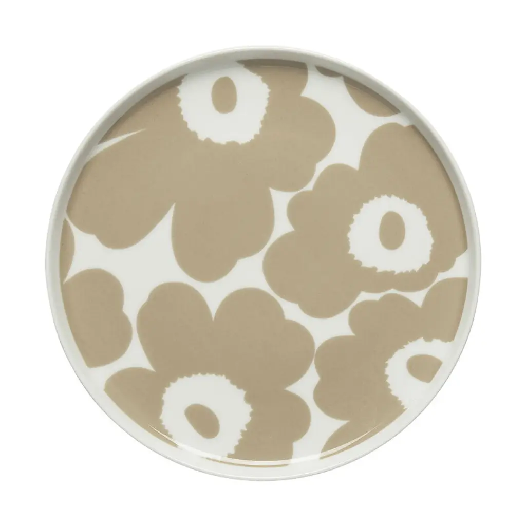 Marimekko’s Unikko mug features Maija Isola’s iconic floral pattern in white and beige. The ceramic mug is part of Sami Ruotsalainen’s clean-lined Oiva tableware collection that suits both casual and festive settings. The Unikko pattern came about in 1964 after Armi Ratia, the founder of Marimekko, had announced in public that no floral fabrics are designed at Marimekko. Maija Isola did not accept rules or restrictions and designed in protest a complete collection of bold floral patterns: Unikko, a Finnish word that means poppy. Today, Unikko is one of Marimekko's best-known patterns and recognized around the world.