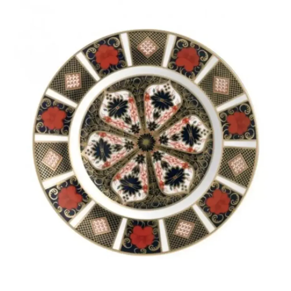Iron red, cobalt blue, and 22 carat gold are combined to stunning effect. The Old Imari pattern 1128 embodies many Japanese and Oriental influences in both food and life, making it the perfect partner to both contemporary and traditional table settings. Made in England by Royal Crown Derby. The Royal Crown Derby Porcelain Company manufactures the highest quality English fine bone china and collectibles at its headquarters in Derby, England (the English Pottery district). Although the present factory was established in 1878, the original factory was set up nearby in Nottingham Road in 1750. Queen Victoria granted permission to include the title "Royal" in the company name in 1890.