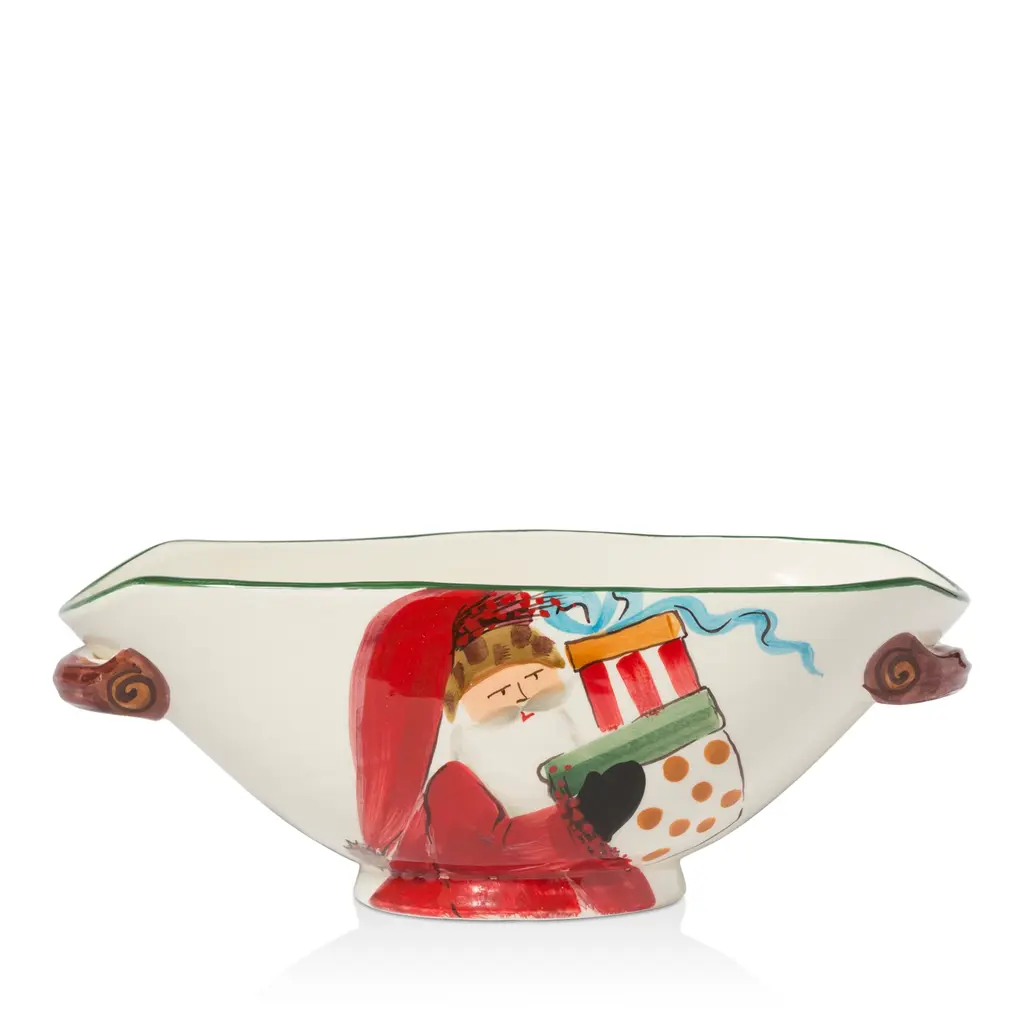 Embrace the Christmas spirit with the Old St. Nick Assorted Cereal Bowls. Perfect for serving soups, cereals, and holiday treats, this assortment features whimsical designs inspired by childhood memories of Christmas in Italy. Since 1983, Vietri has specialized exclusively in Italian handcrafted ceramics, stainless and pewter flatware, mouth blown glassware, lamps, urns and planters. Families of artisans with 3 or 4 generations of history create these special pieces using centuries-old techniques. The subtle color from a paintbrush and the curving stroke of the artist's hand are never repeated in quite the same way, making each piece truly unique.