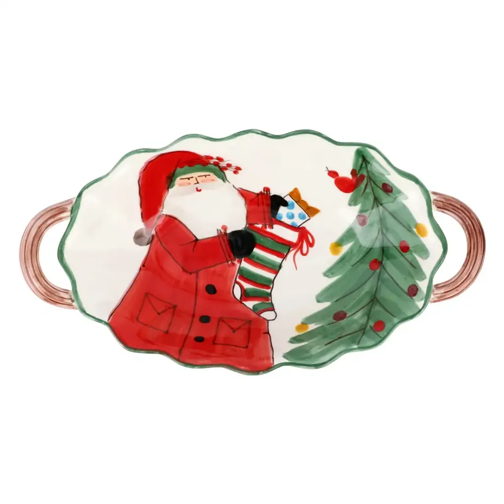 Handcrafted from weighty, substantial earthenware in VIETRI's Tuscany studio, serveware featuring Jolly Old Saint Nick brings an artisanal and whimsical note to holiday celebrations.