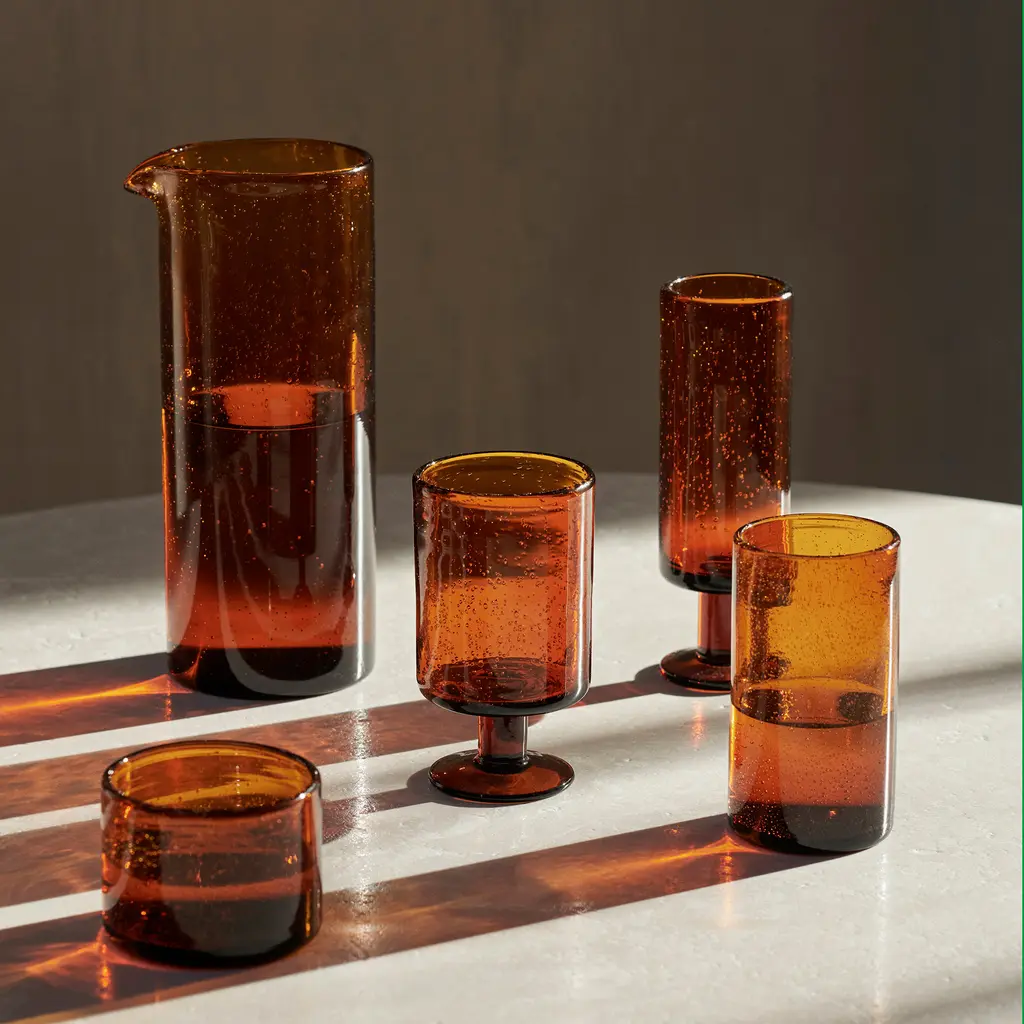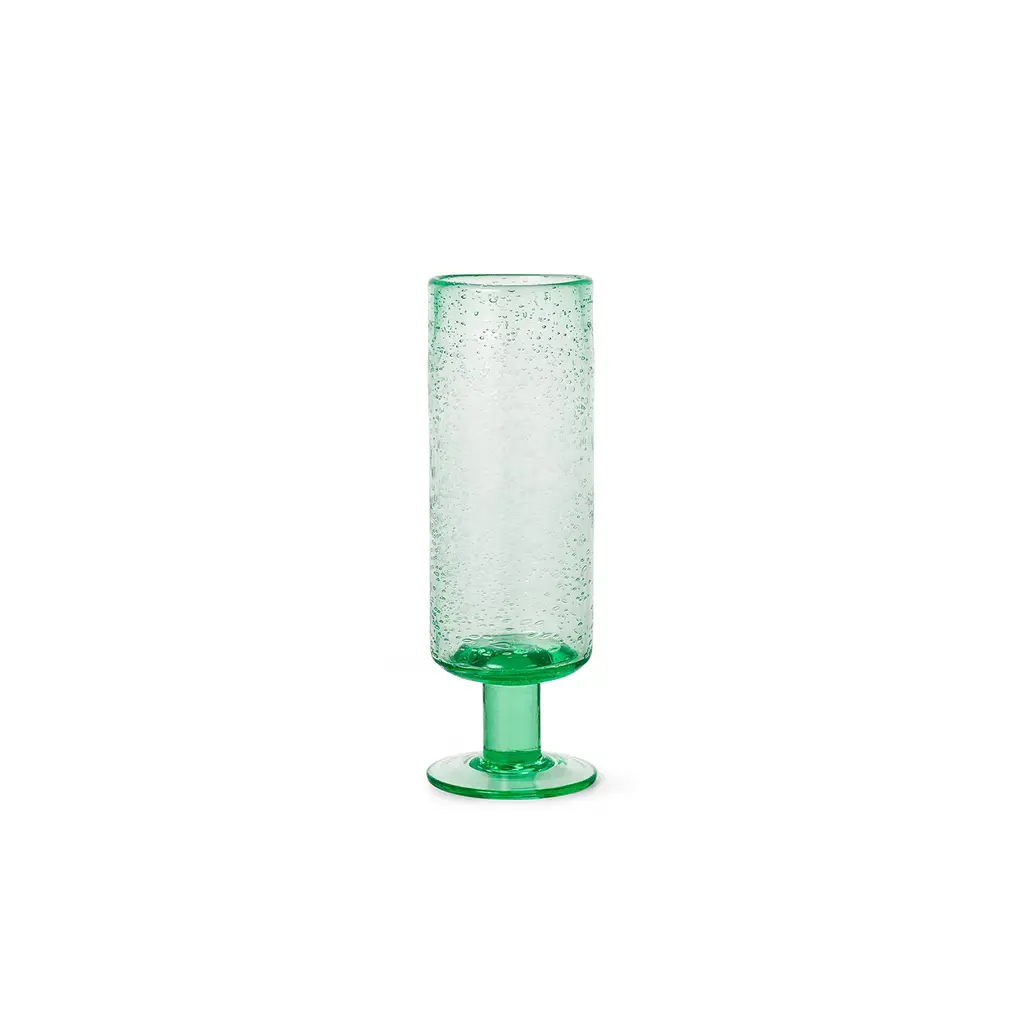 The Oli Glassware Champagne Flute is a beautifully crafted piece, designed to fit comfortably in the palm of your hand. Made from recycled glass, these glasses exhibit a soft and natural color that elevates the look of any drink. They feature strategically placed air pockets that create a multitude of delicate bubbles, adding a beautiful texture to the glass. Because they are made from recycled materials and are mouth-blown, each glass has its own unique thickness and shade, making each one truly one-of-a-kind. Choose from recycled clear or amber options to suit your style.