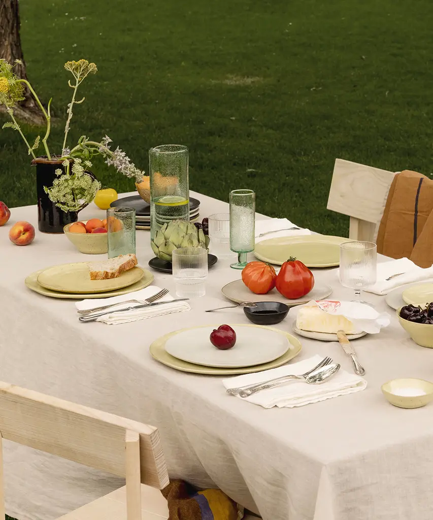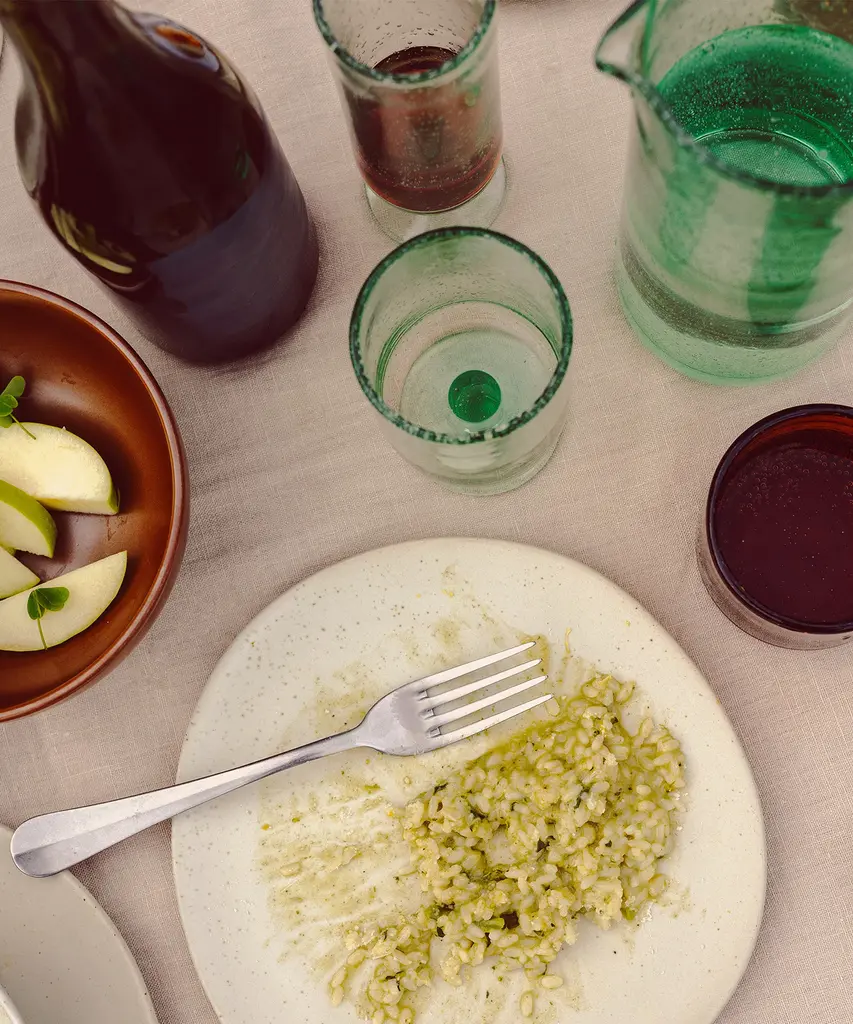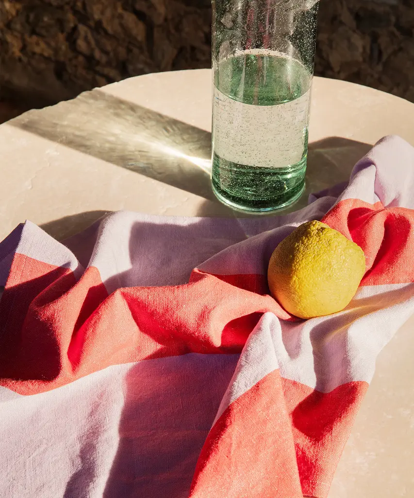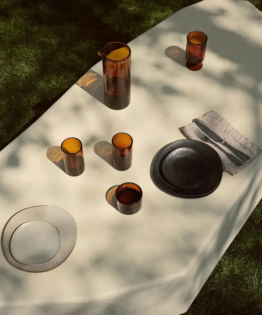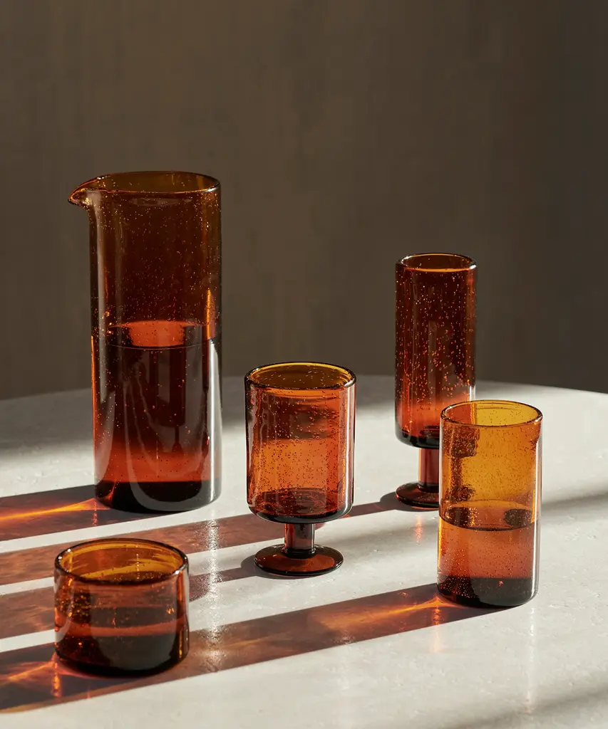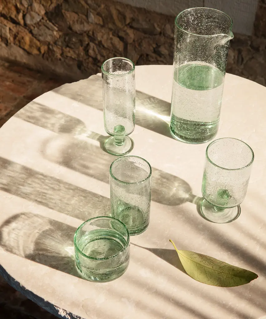Effortlessly resting in your hands, the versatile Oli Jug is designed for everyday living. The jug is made from 100% recycled glass with a characteristic, subtle tone that makes your chilled beverages appear even more refreshing. Adding to its tactility, the Oli Jug has distinctive, tiny bubbles created by deliberate pockets of air left between the layers of mouth-blown glass, which makes each jug unique. Designed and produced by the Copenhagen-based studio Ferm Living.