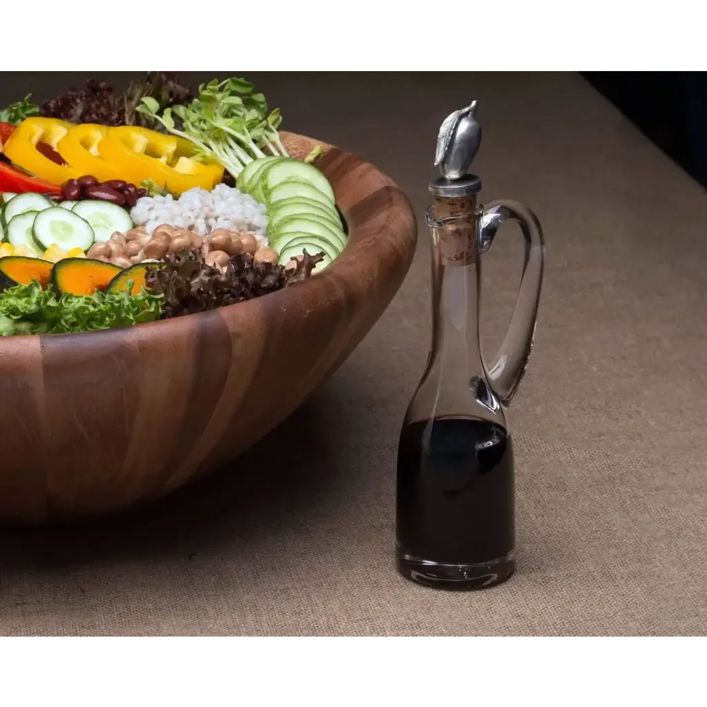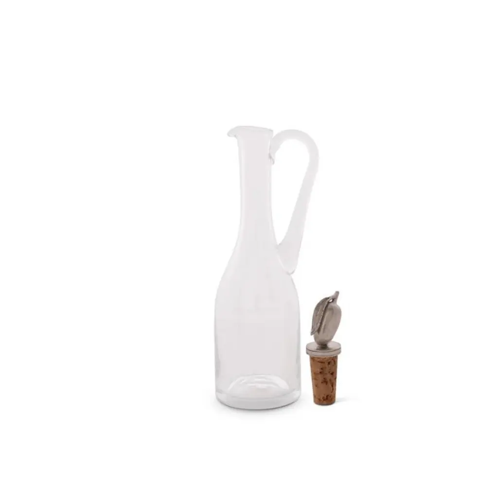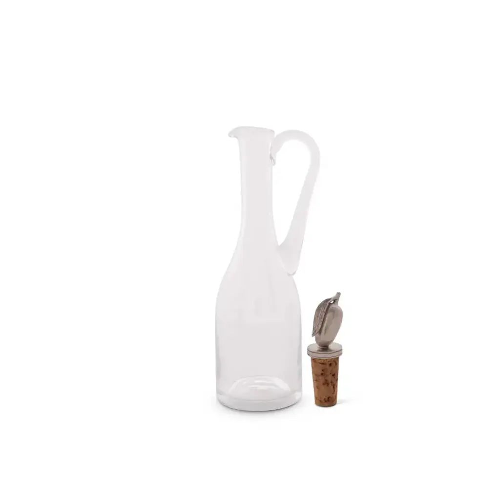 Vagabond House's Olive Cruet features a natural cork stopper topped with a pewter olive finial. Add arts-n-crafts style to a table or counter top and store and serve oil, vinegar, honey, syrup, etc. Hand-blown glass and luxurious pewter, thoughtfully designed and hand-crafted to perfection. With its thin neck and the wider bottom, this cruet combines functionality and timeless design. Vagabond House is a family-owned American company specializing in fine pewter tableware, servingware and giftware. Largely inspired by nature, their exclusive products are designed to be unique, functional heirlooms for those who seek to express tradition and style in both family and formal entertaining.