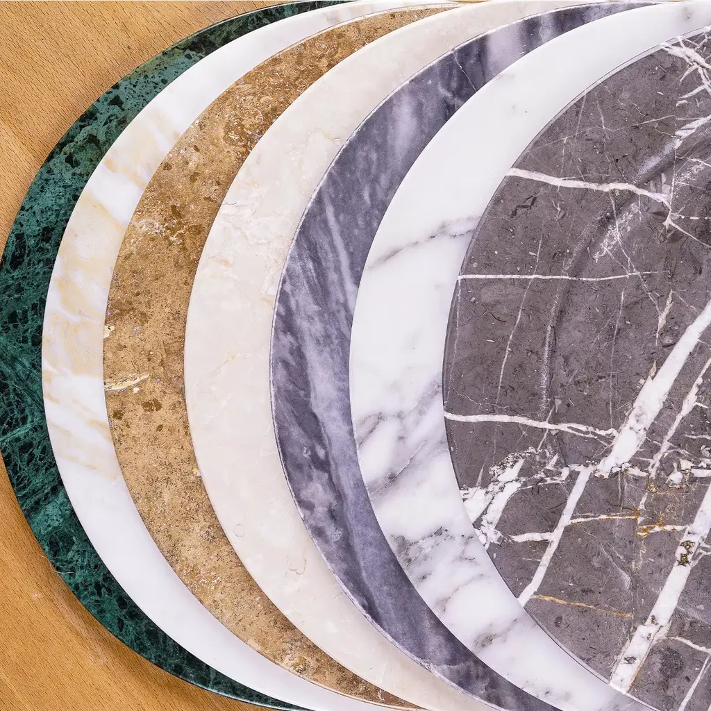 This sophisticated plate of Calacatta marble is an ideal, elegant serving dish. Exquisitely handcrafted featuring a slight internal concavity outlining its original purpose, each piece boasts unique veining and color gradients in the marble. Slight variations in shape and veins are a mark of genuine handcraftsmanship. Please contact the Concierge for available customization options.