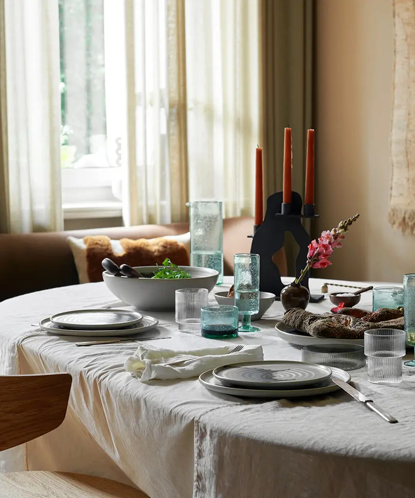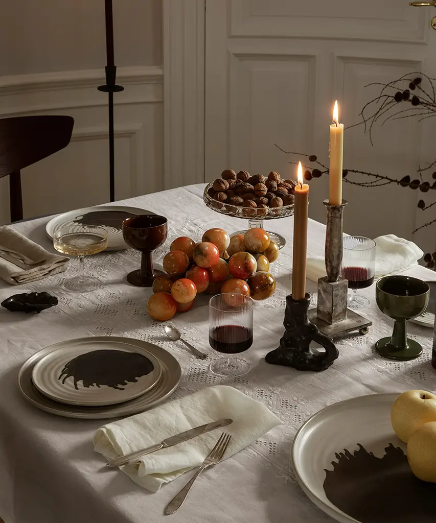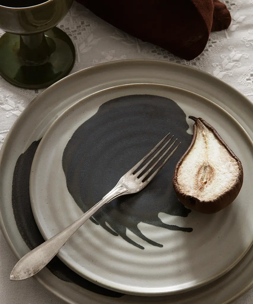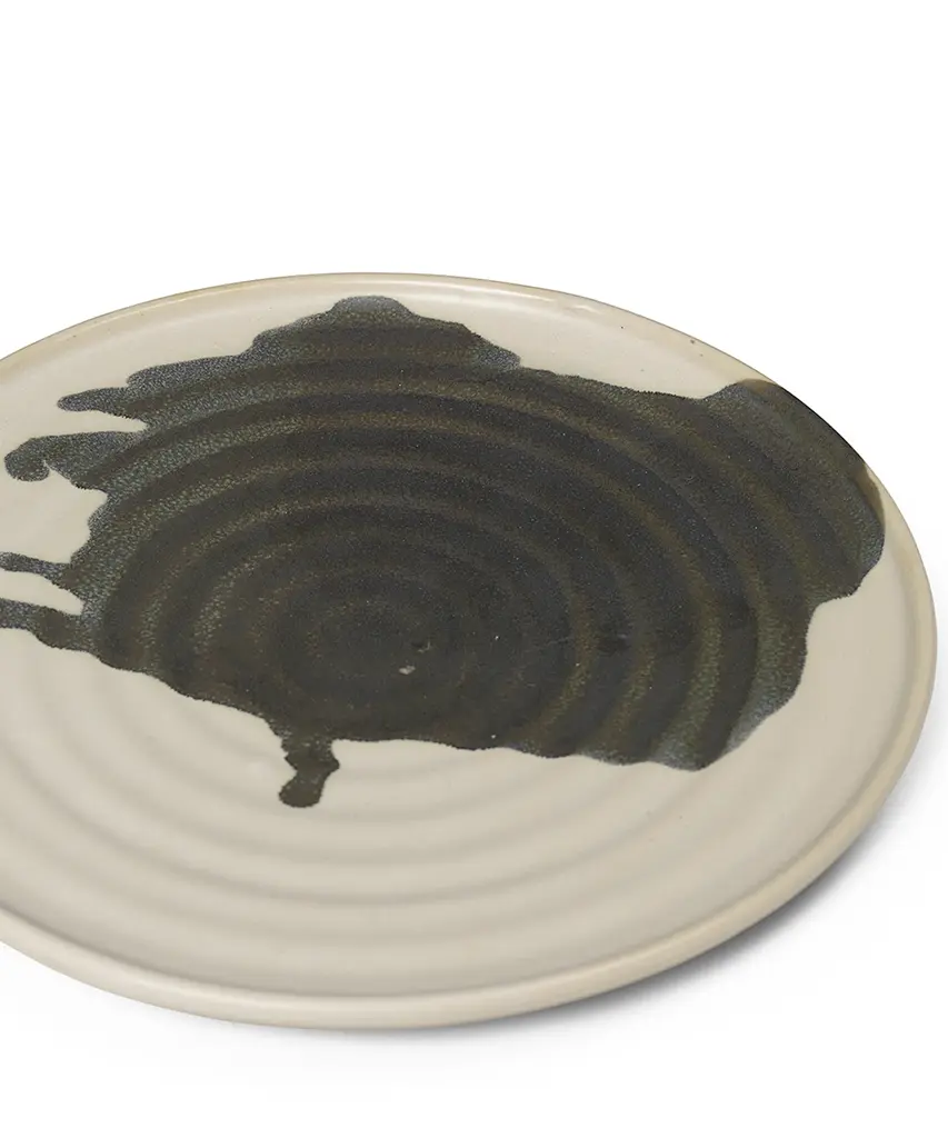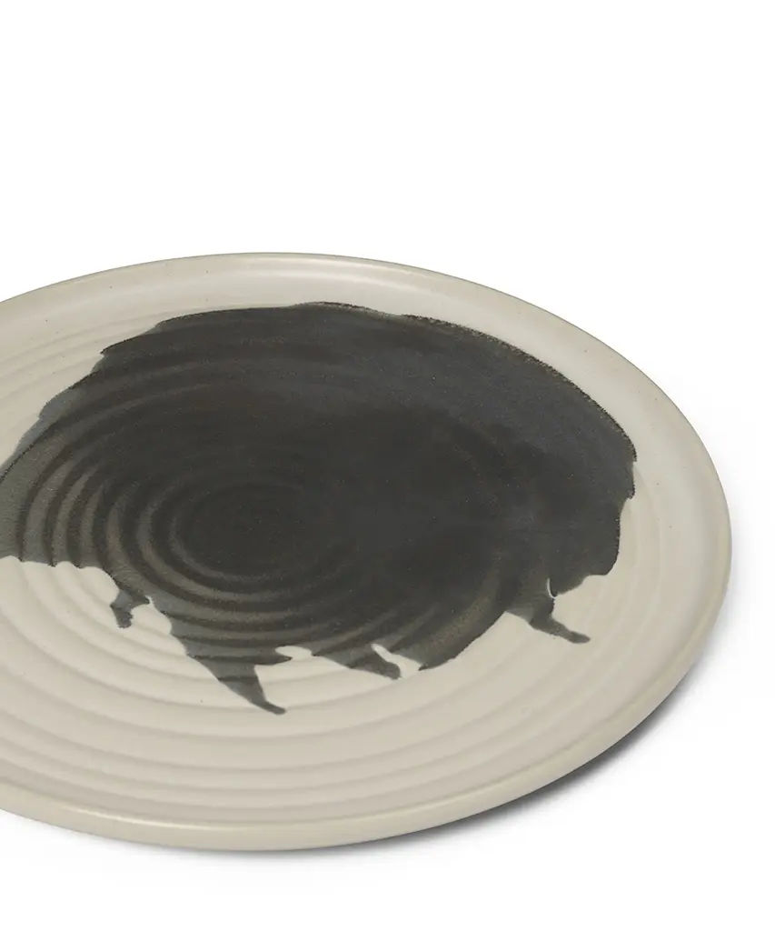 Perfectly describing the craftsmanship going into this plate, Omhu is the Danish word for making an effort. Each plate is made of stoneware and features a unique, colored splash pattern, which has been added by hand. Let the Omhu Plate serve as the perfect canvas for thoughtful, homemade meals. Designed and produced by the Copenhagen-based studio Ferm Living.