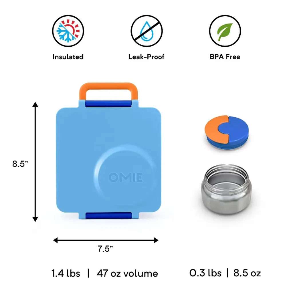 Omie Omiebox Insulated Bento Lunch Box With Leakproof Thermos Food Jar 3 Compartments - Blue Sky