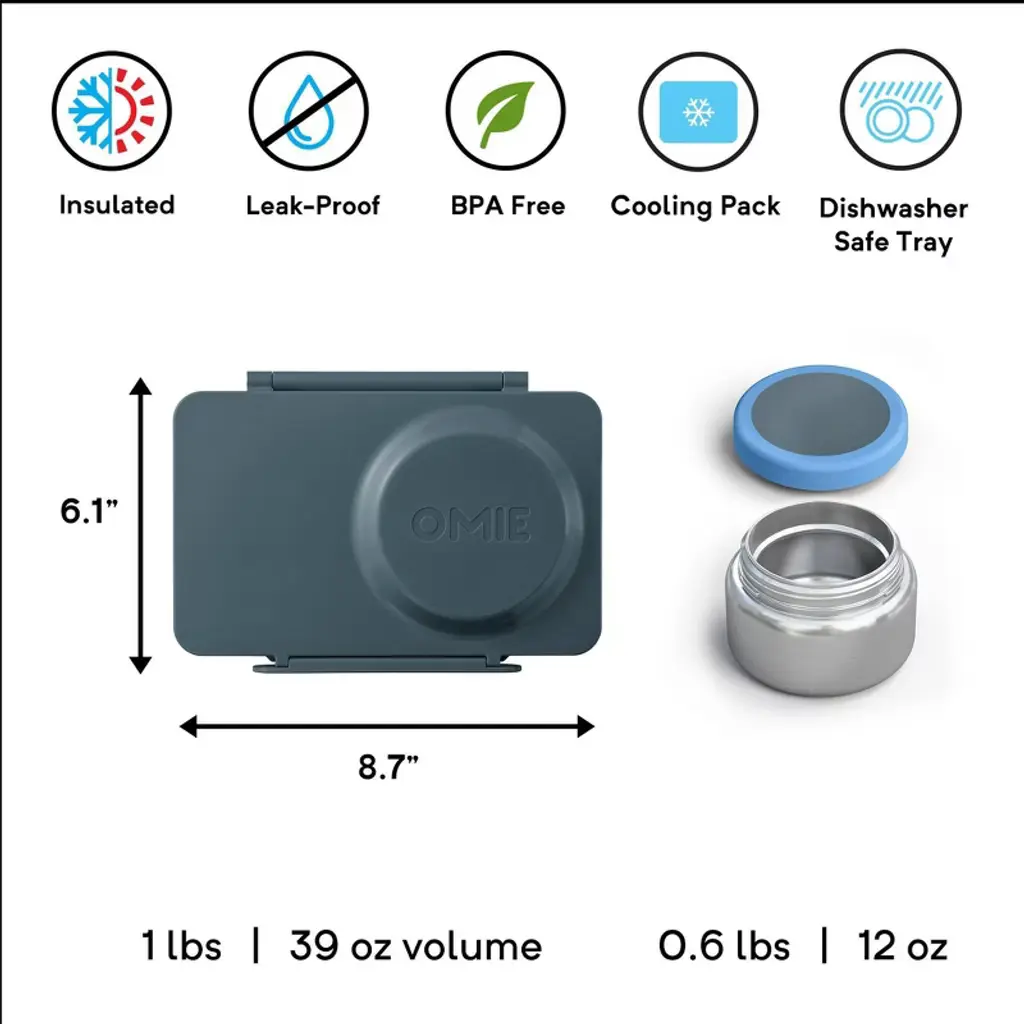 Omiebox Up Bento Box With Thermos Food Jar 2 Compartments And Ice Pack - Graphite