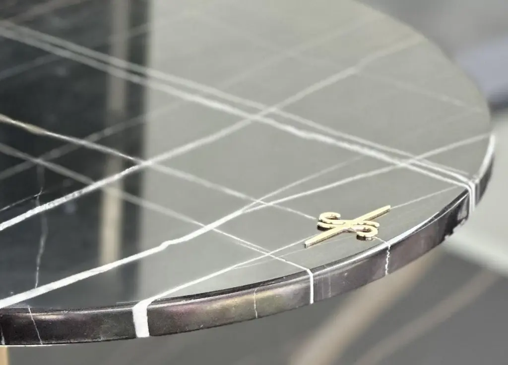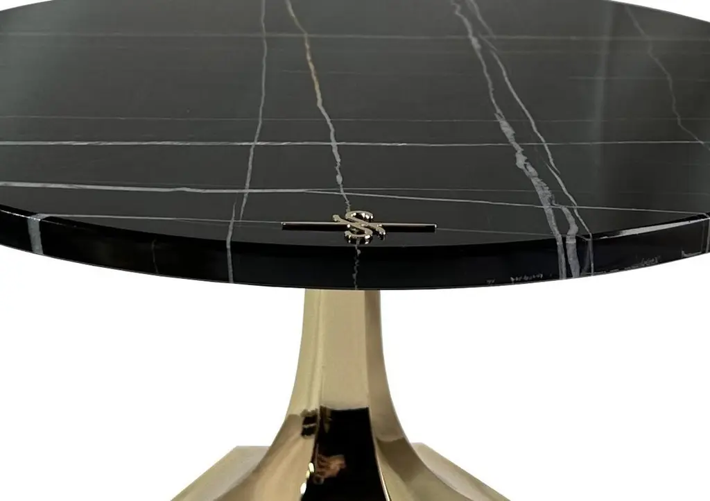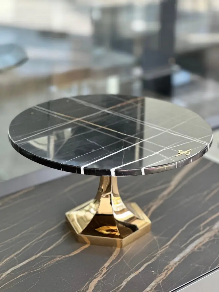 One Plate Marble Cakestand by Euromarmi StoreDimensions: D 33 x W 33 x H 18 cmMaterials: Sahara Noir marble, 24K Gold-Plated.Founded by Angela Stiuso, Euromarmi Store was born from the experience and dedication that the stone processing has passed down from generation to generation.Each creation carries with it the legacy of centuries of Italian craftsmanship and meticulous manufacturing enhanced in every single process, in perfect balance between tradition and innovation. Our fine materials, manual skills, and passion are the assets that guide Euromarmi Store in the production of inimitable objects, creating a rare and magical identity with timeless elegance.Our wide range of products offers a wide choice that ranges from furnishing accessories to objects, from mineralogy to natural stone jewelry. In addition, we offer a highly specialized design service for the planning and construction of interiors and exteriors, using highly technological machinery capable of satisfying every personalized request.Production strictly follows sustainability principles, adopting practices aimed at reusing and enhancing resources. We are committed to maximizing the value of each material treated, ensuring that nothing loses its intrinsic value. This ethical approach translates into a responsible production cycle, aligned with the highest standards of environmental sustainability.