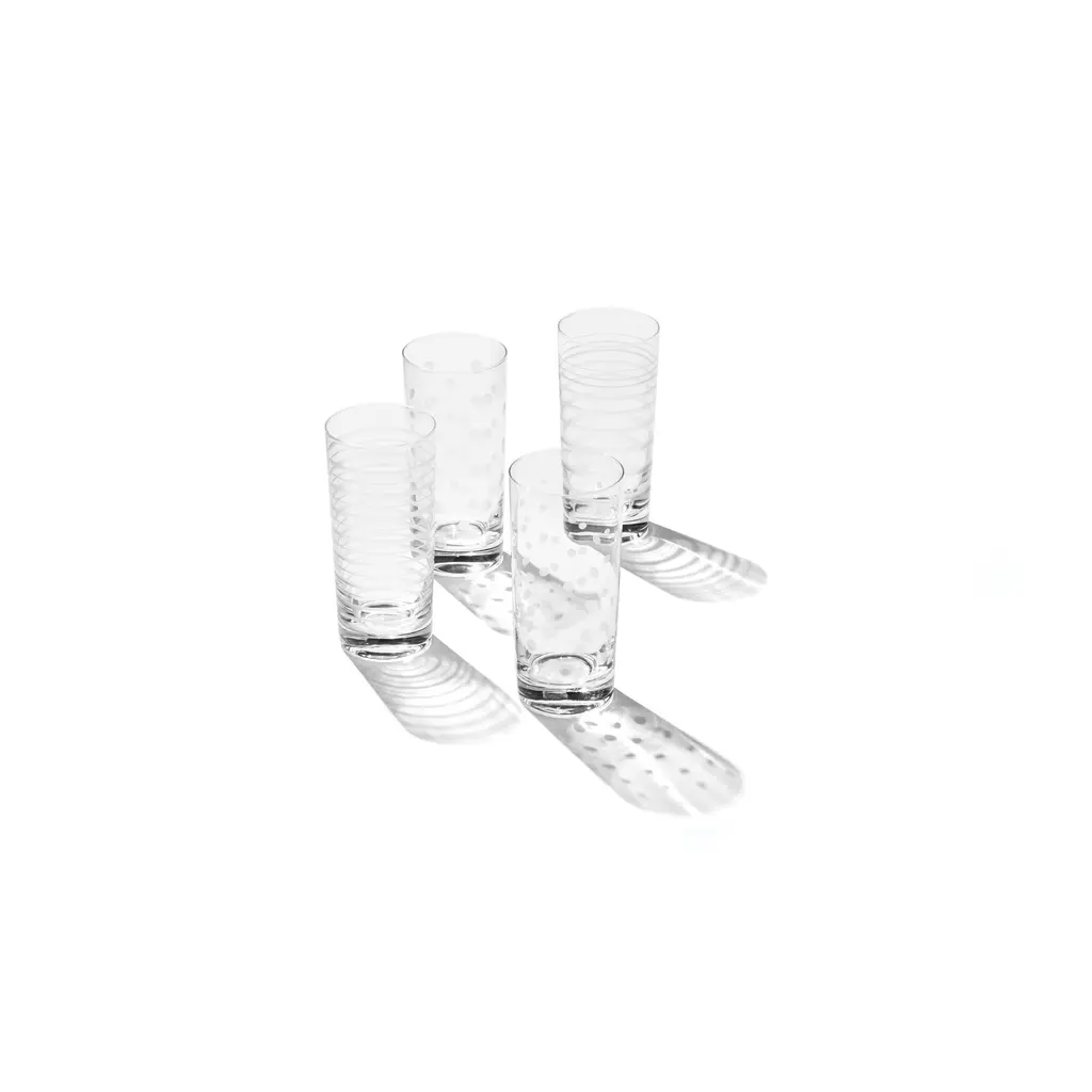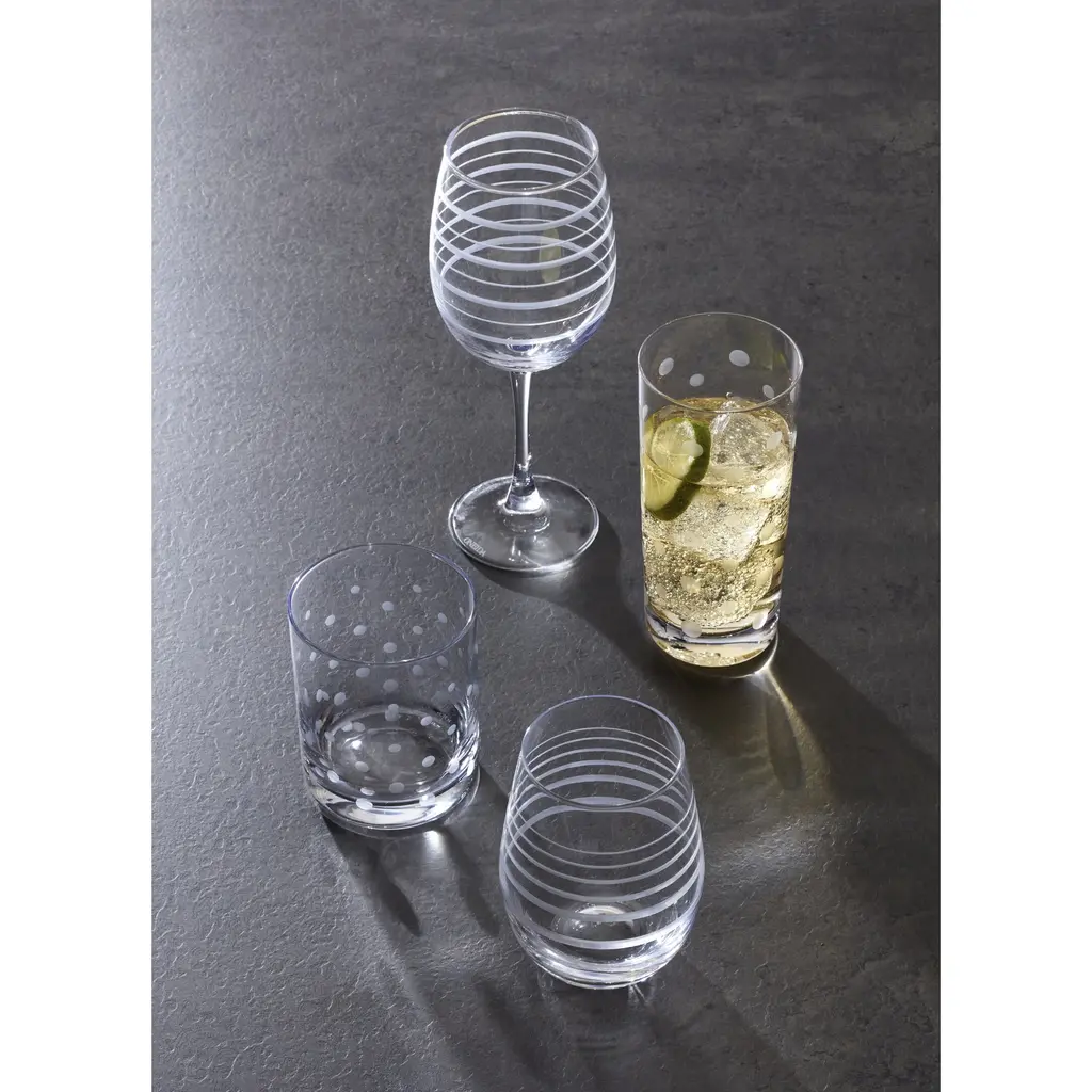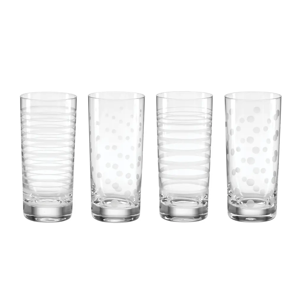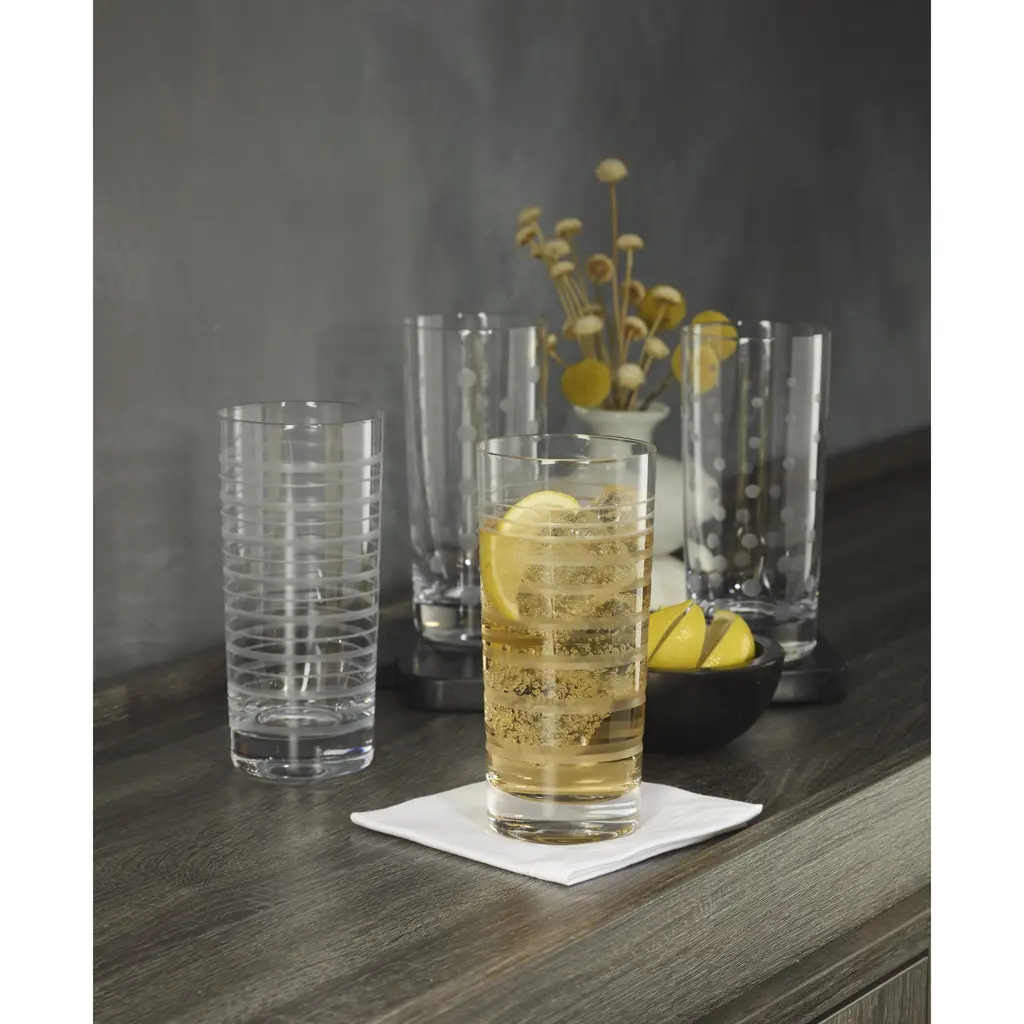 When it's time to celebrate, mix it up with barware that's made to, well-mingle! These party starters set the scene with dots and swirls artfully etched onto classic hiball glass silhouettes. May it serve up smiles for all your special events.Features:What is Included: